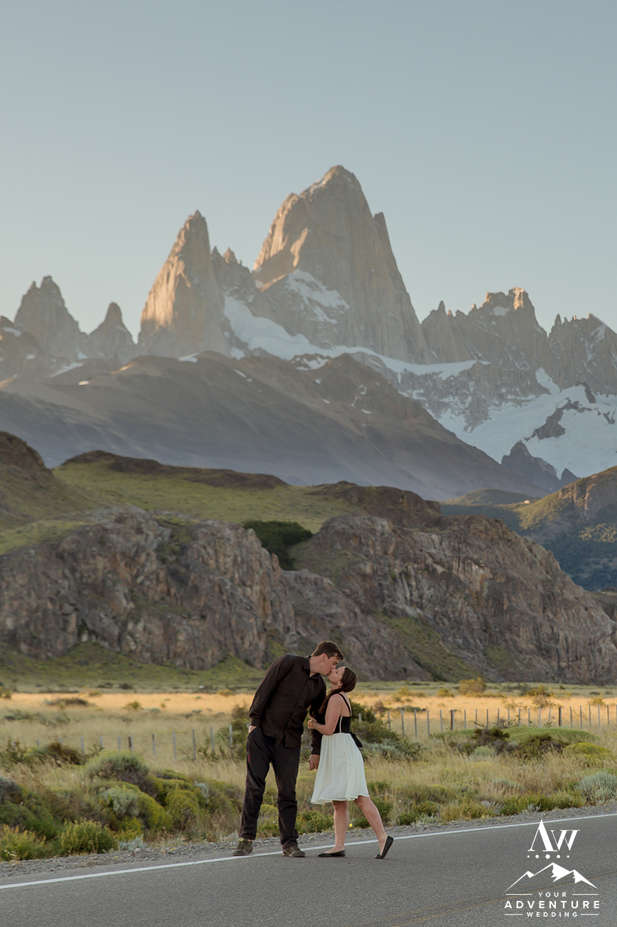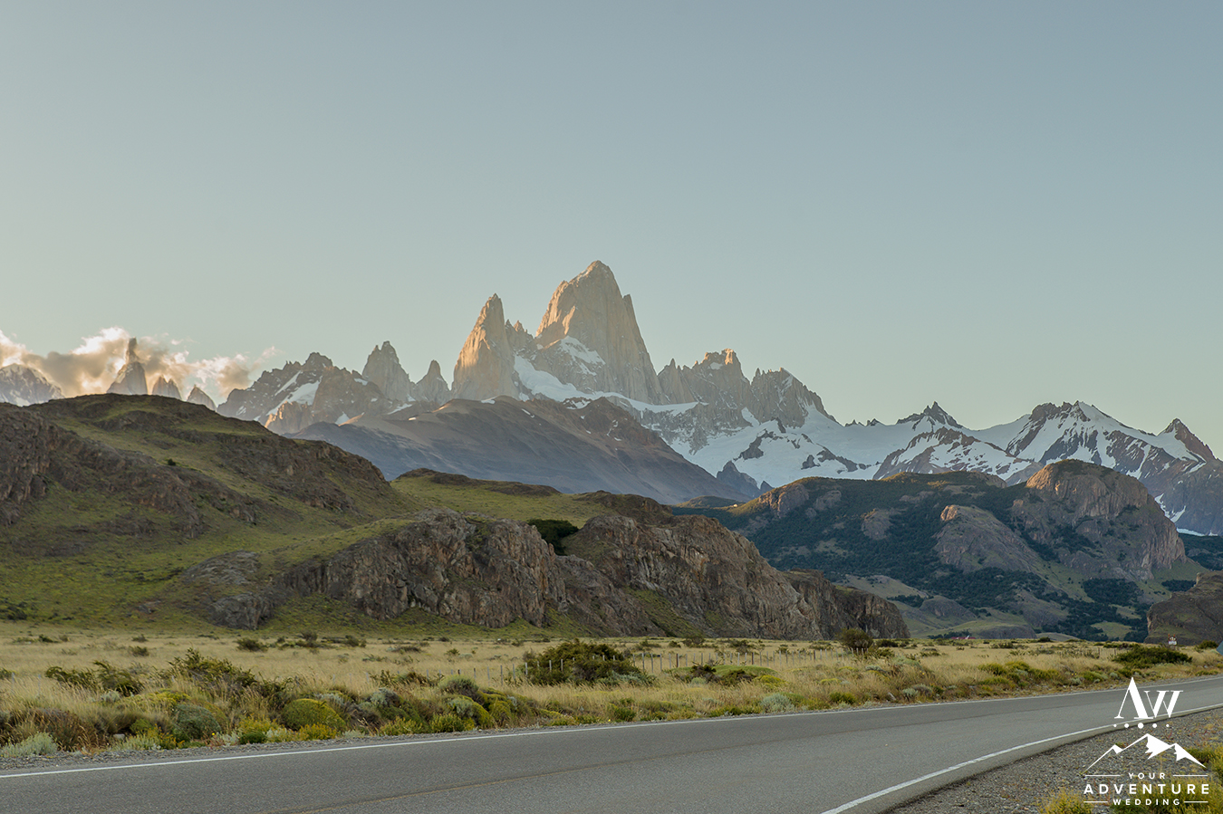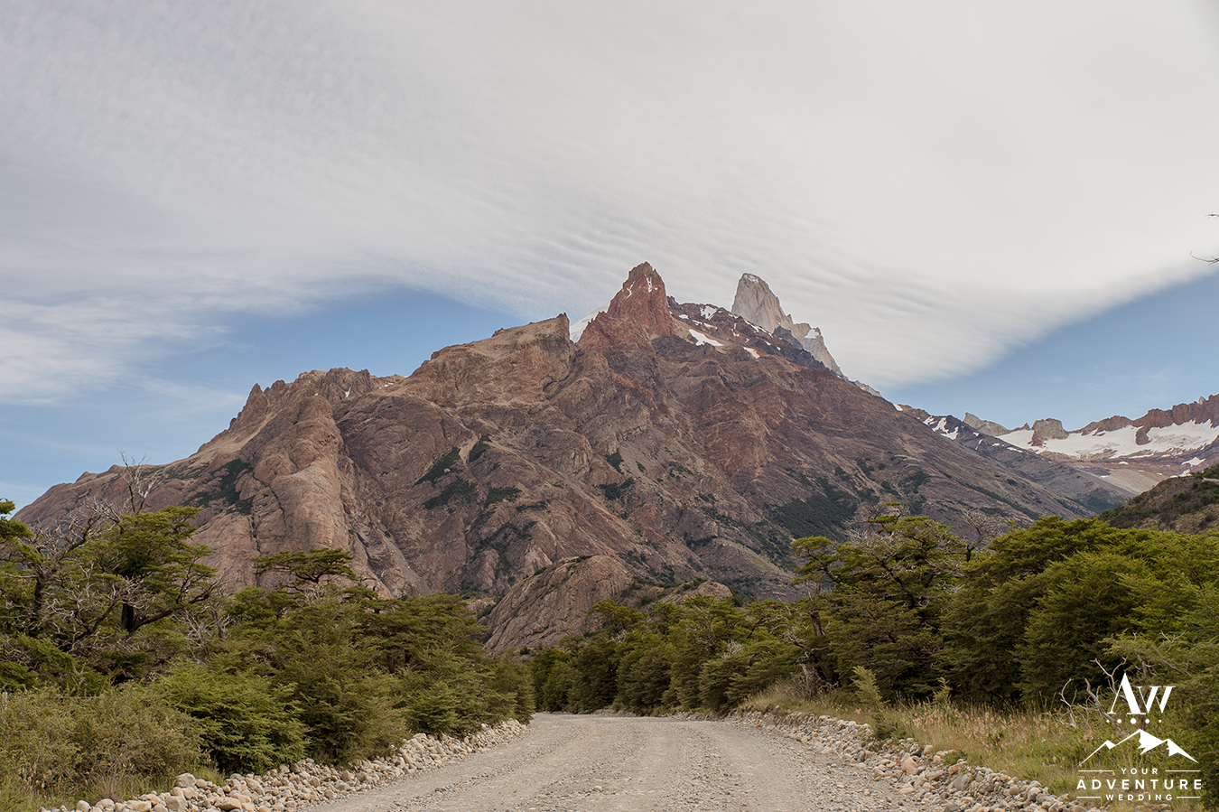 Three hours north of El Calafate, past Lago Argentino and Lago Viedma, but still within the Los Glaciares National Park you’ll find the grand Fitz Roy Mountains. The towers of Mount Fitz Roy are nestled in the small town of El Chalten, which I like to refer to in its current day situation of being a “pop-up-town” because everything in this town looks less than 1-5 years old (as of when this Patagonia Wedding Planning post was published).
