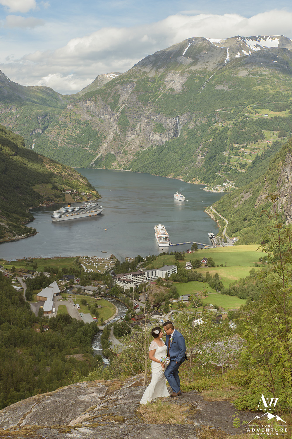 This couple and this view! The heavens opened for this amazing Norway wedding in the Geirangerfjord!