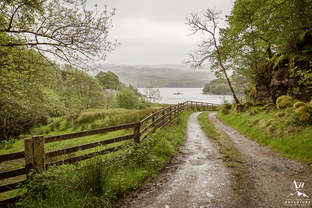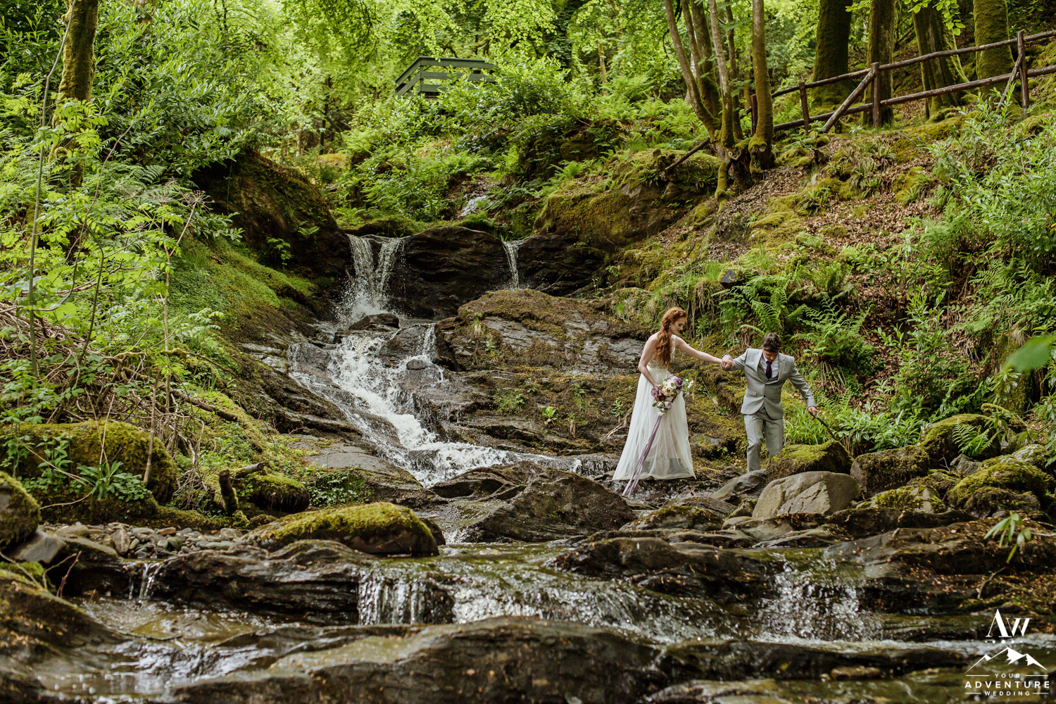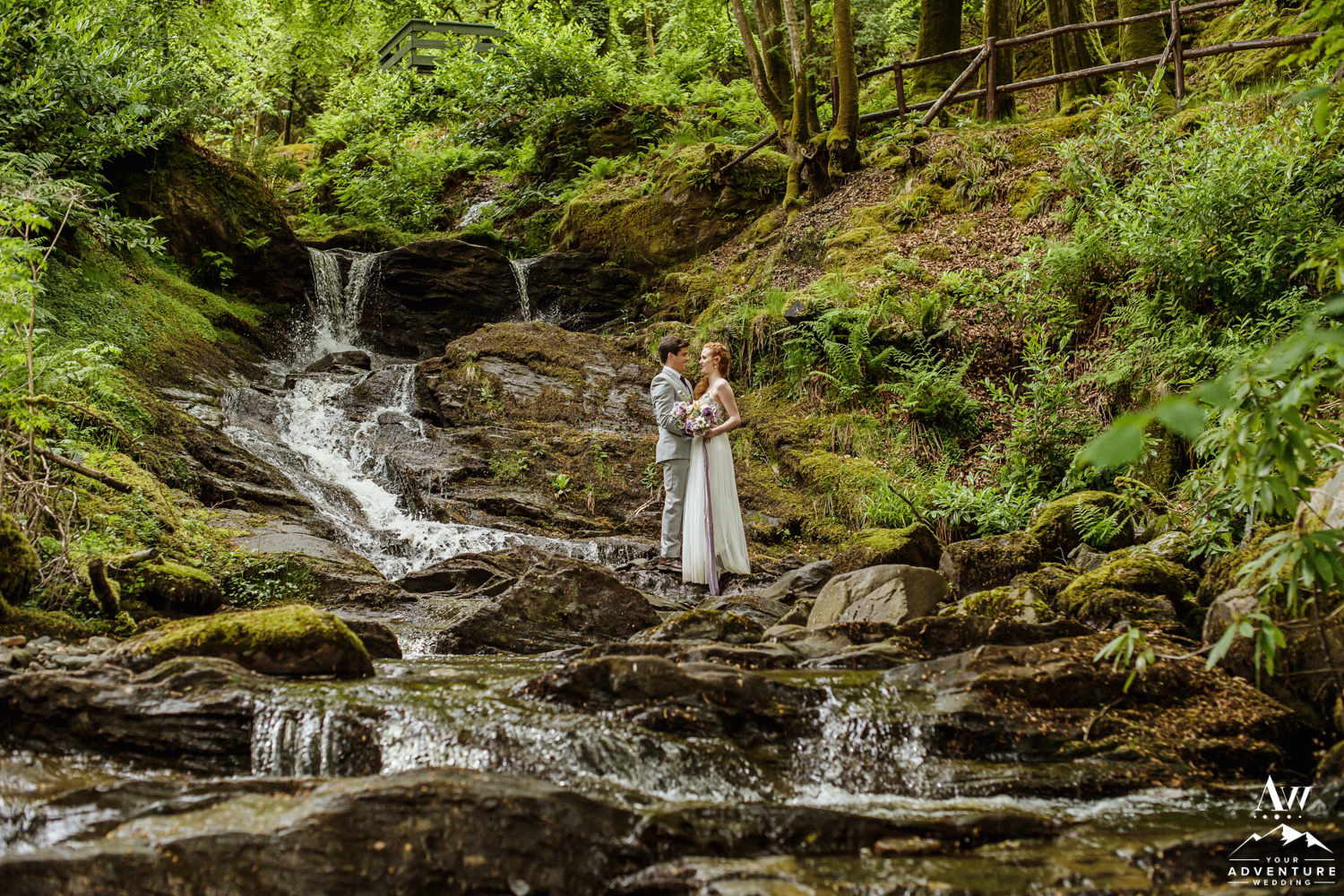 The roads within the Cowal Way (and within Argyll and Bute), were of stone or dirt texture, and frankly it added to the adventurous charm. Before finding the Cowal Way, we had an image of the Lake Lochmond area as being a pretty generic Scotland wedding location. And by generic we just felt it didn’t offer the true adventure wedding style we at Your Adventure Wedding strive for… Which is offbeat and non-touristy. But when found the Argyll and Bute areas, we were blown away by the amount of beautiful options! There is a sense of untapped mystery and calmness about this area that speaks to our hearts. We even found our way to a secret waterfall to explore! Imagine your Scotland adventure wedding photos having this super cute waterfall as an exploration spot!