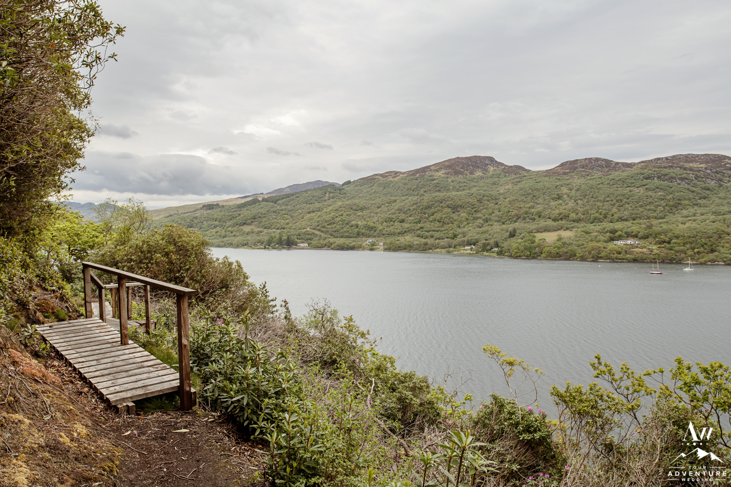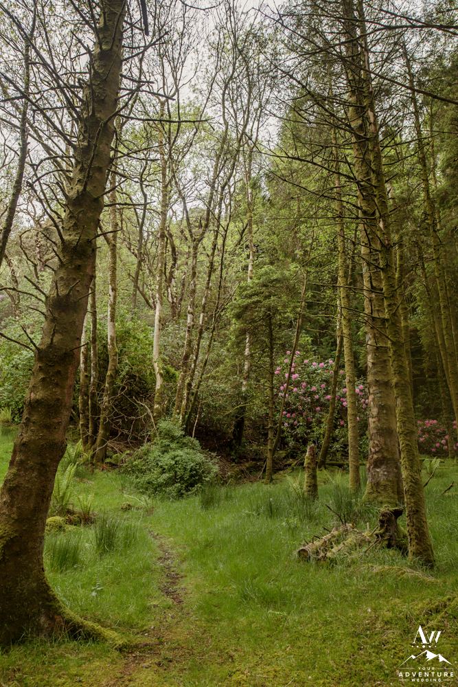 For the most part, we found the trails to be nicely maintained and moderate hiking skills are needed. It’s not flat or easy all along the way as there are large steps over boulders, mud, and other nature items to dodge, so we highly suggest bringing along a pair or walking sticks, especially if you’re getting Scotland wedding photos taken along the way.