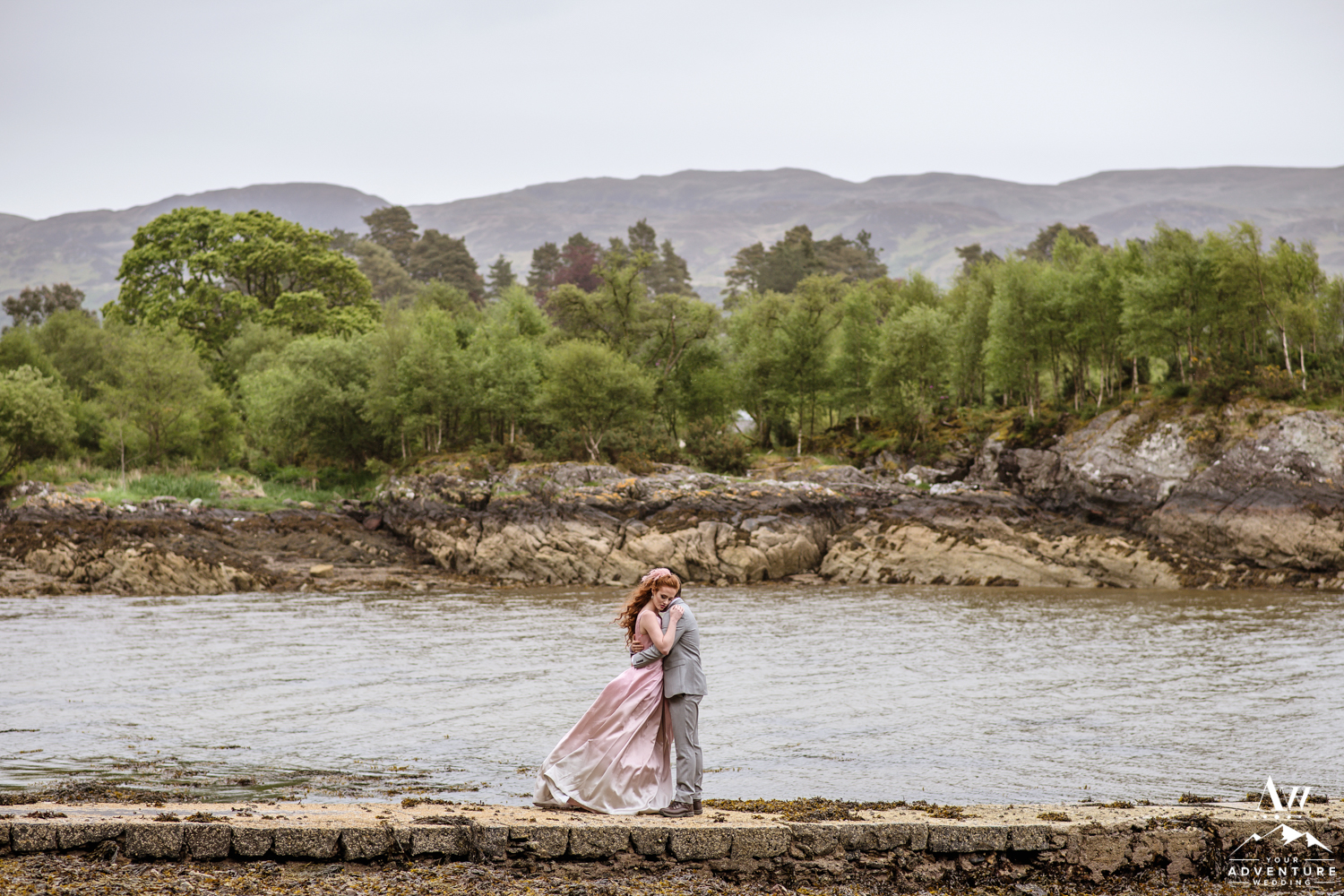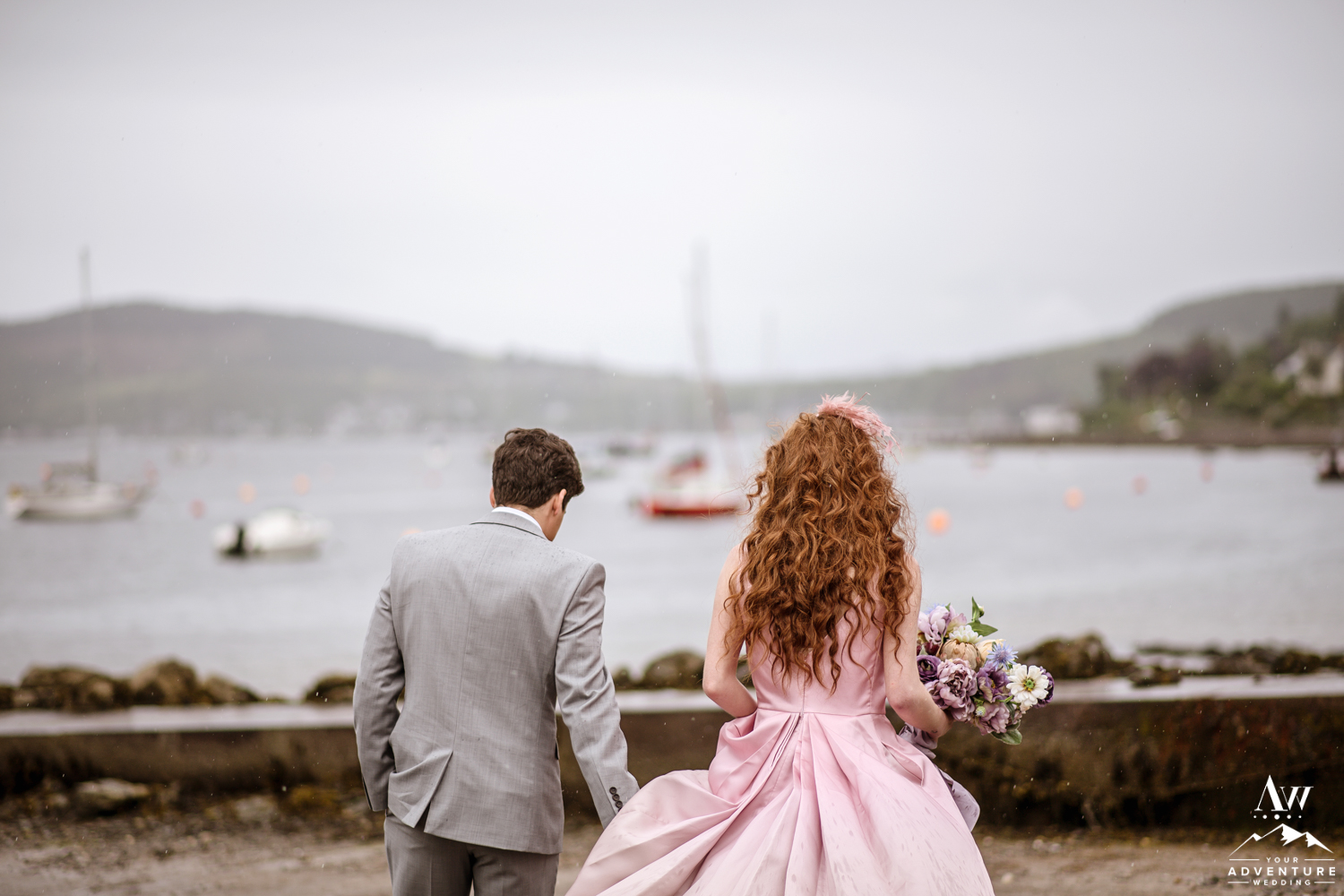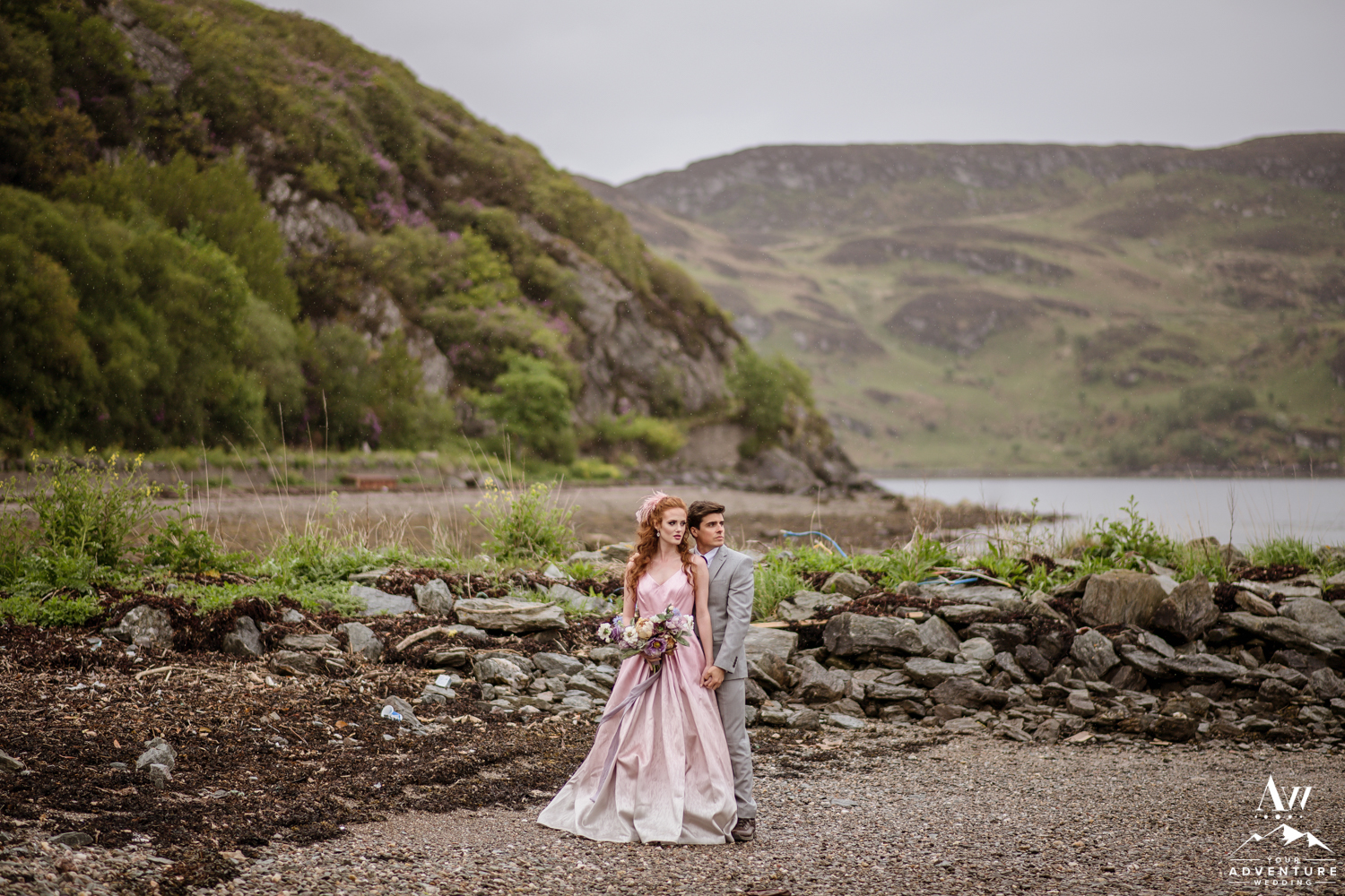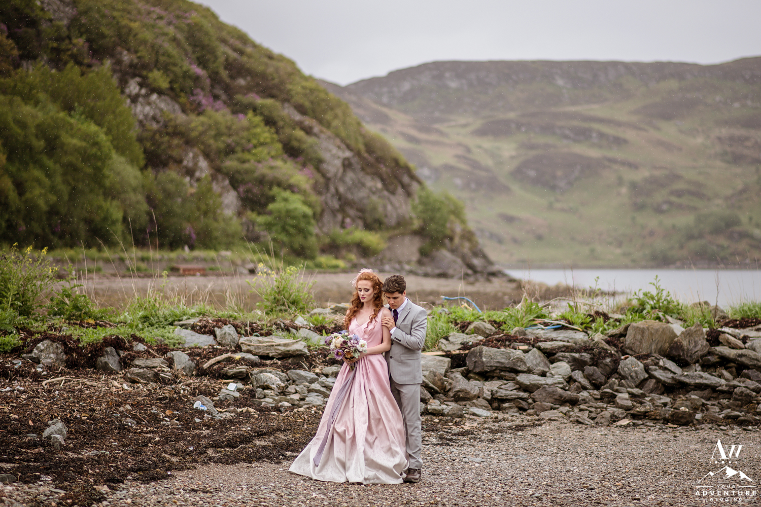 So when you start planning your destination wedding in Scotland, what do you need to think about? IE, what sort of challenges might you face? Well… If we are your adventure wedding planner for your Scotland elopement / wedding, we will fully educate you on all of the things to expect, best time of year and areas, etc. Weather may be one of your biggest challenges, so you need to just come to the realization that it will likely rain on your Scotland wedding day and just embrace that dynamic. After all, you’ll end up with really lovely moody Scotland wedding portraits too!