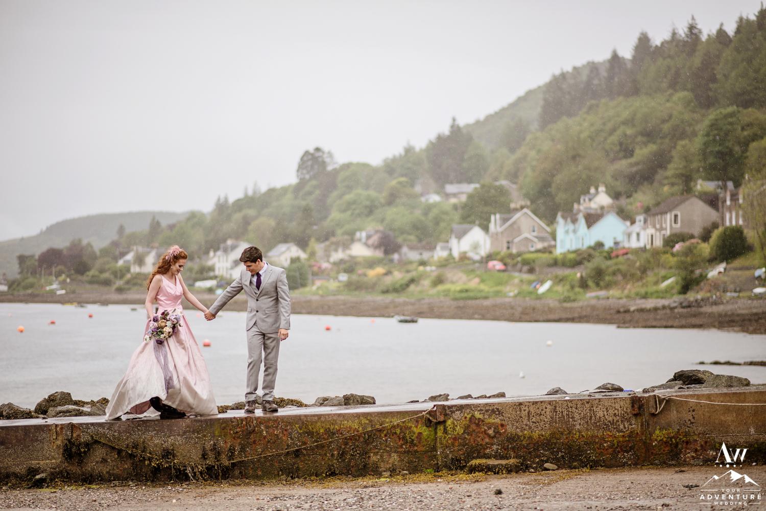 When you think about having an adventure wedding in Scotland, what sorts of landscapes come to mind? Do castles? Ruins? Sweeping mountains? Textured rocks? Endless trees? Rolling hills? Dark clouds? Sweet waterfalls? Rocky beaches? Amazing hikes? Little fishing villages? The options are endless for Scotland wedding locations! See a few of our recent favorites of a wedding couple along the Cowal Way below…
