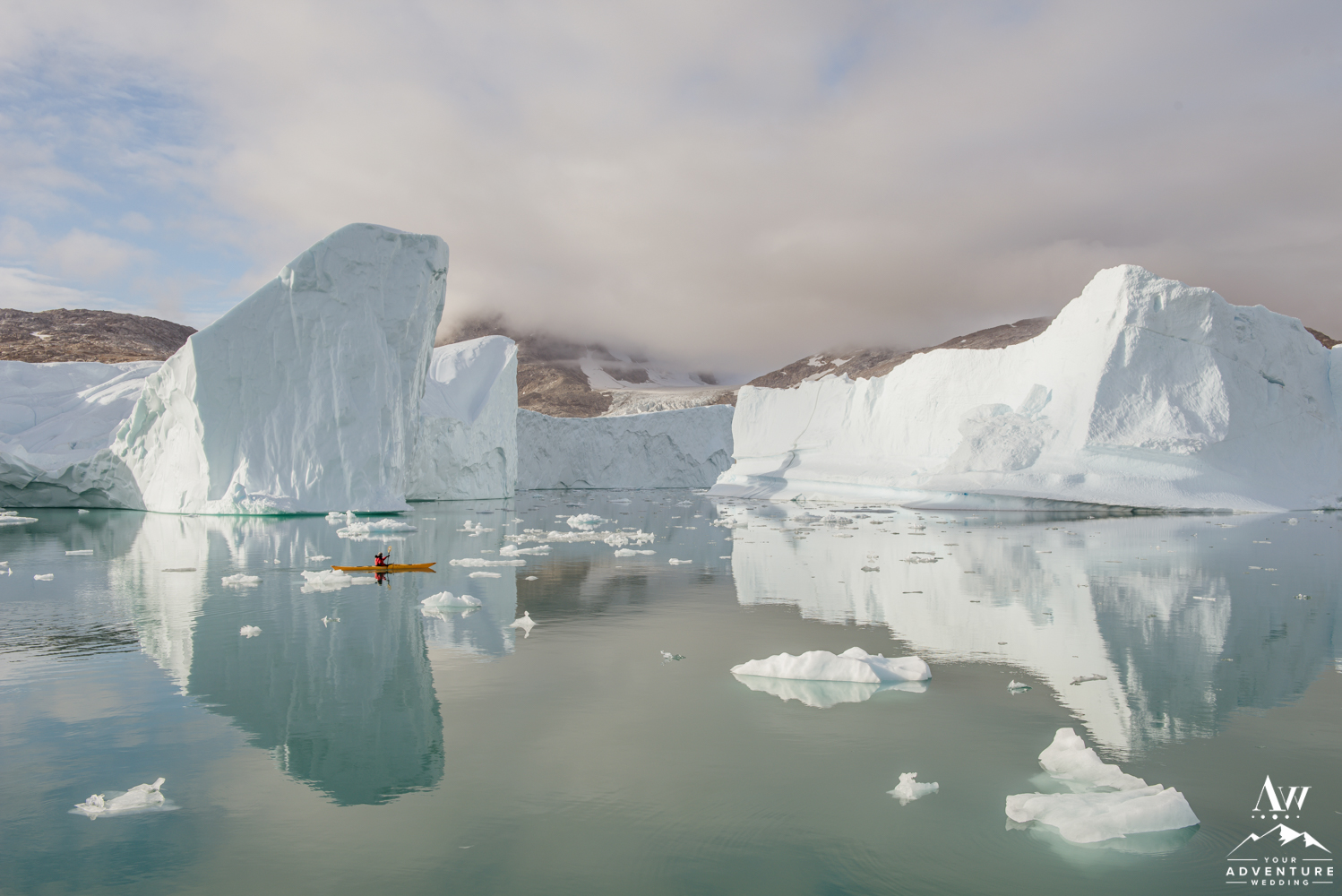 Booking a private boat that is also adventurous is key. Having the flexibility of “running your own show” allows you to get really dynamic Greenland wedding photos. The sailboat team we booked privately came with kayaks (doubles and singles) and SUP (stand up paddle boards) and a knowledgeable staff of not only navigating the sea’s ever-changing conditions but also the icebergs themselves (on if they were safe enough to go on top)!