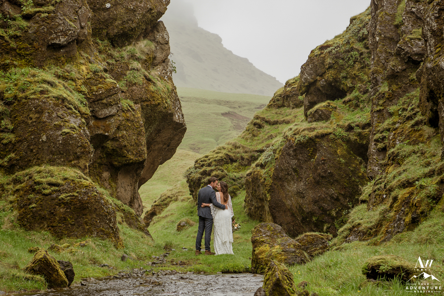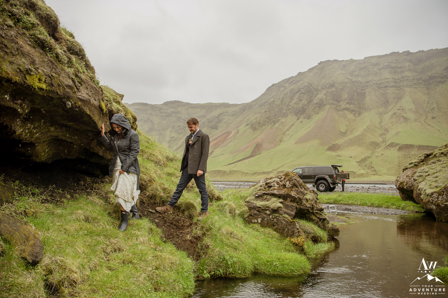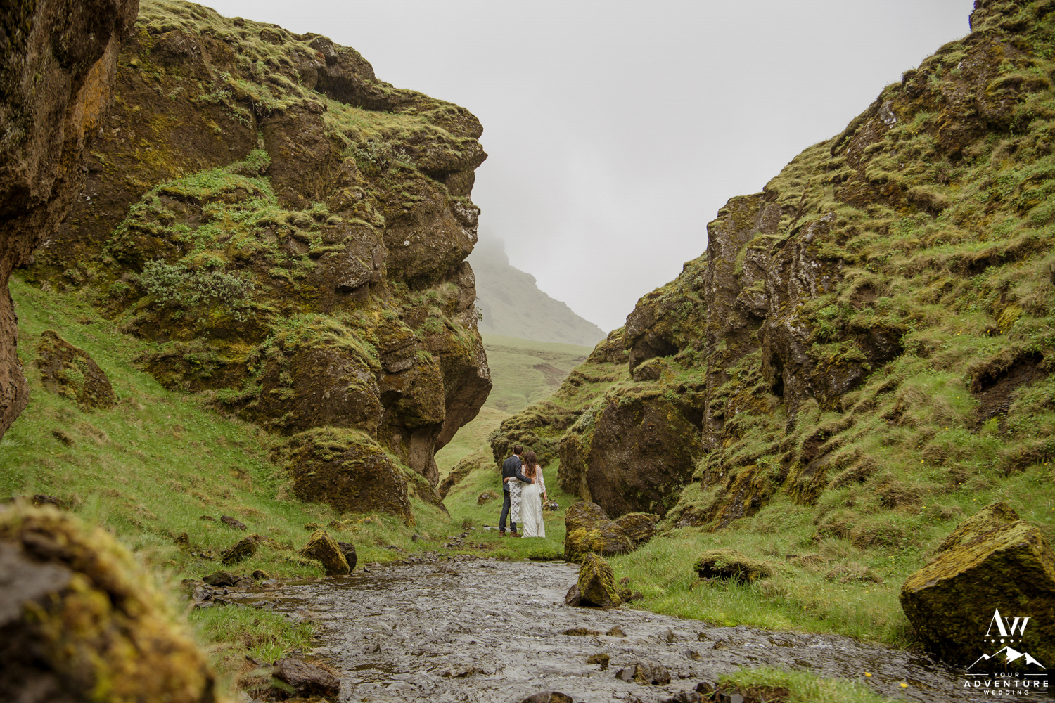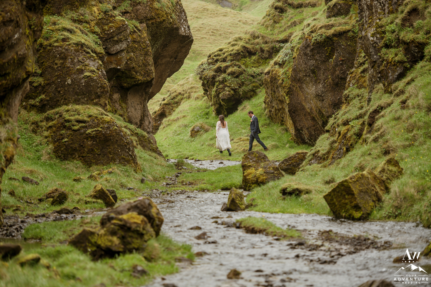 Moreover, people often find themselves obsessing over how green Iceland is. Erin and Julian were no different. Really wanting to have the complete “local” and private experience during their Iceland elopement, they could not wait to go exploring through a narrow canyon!