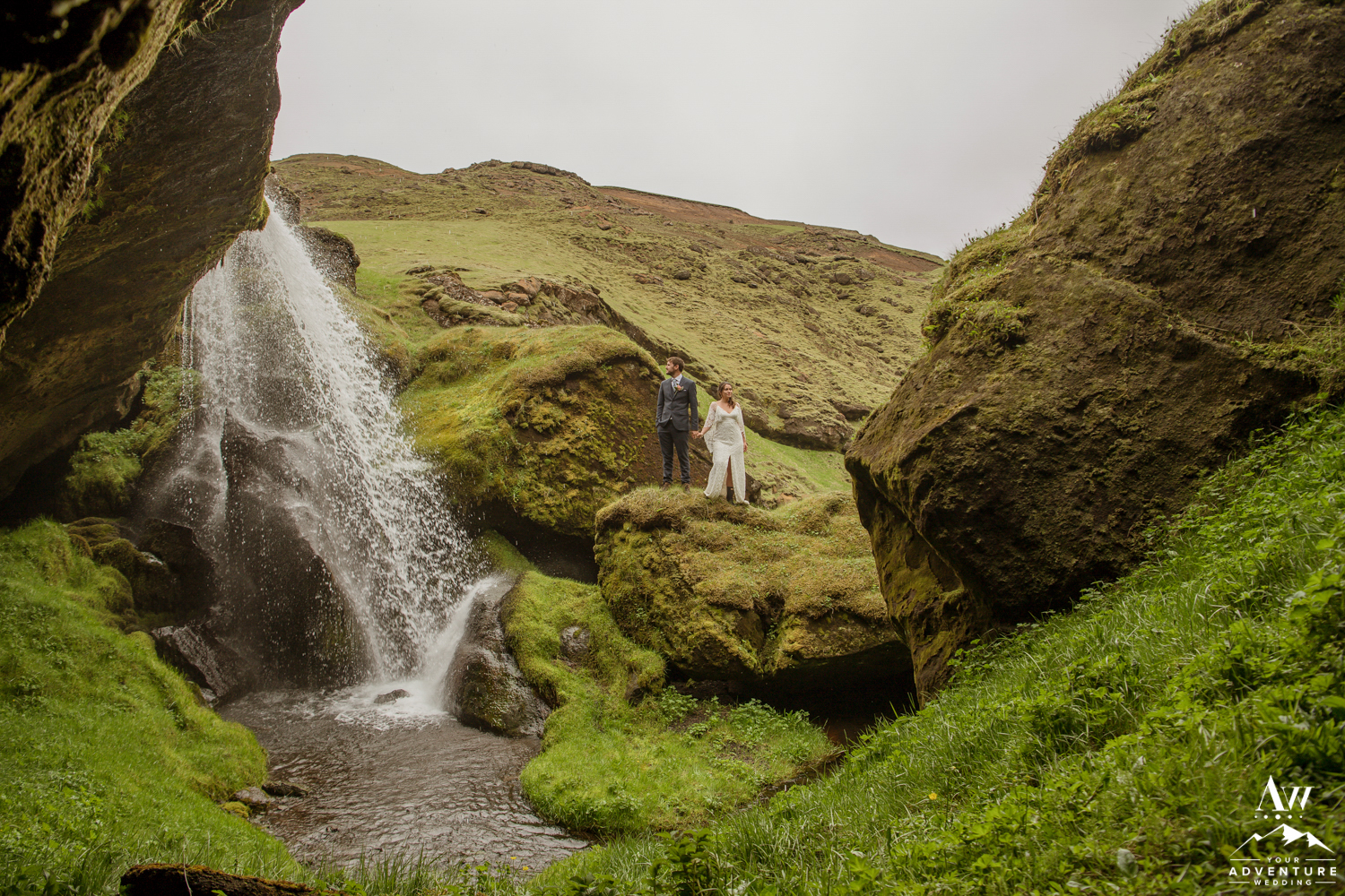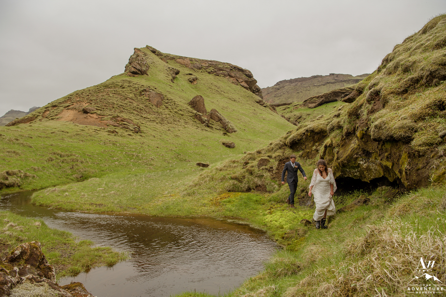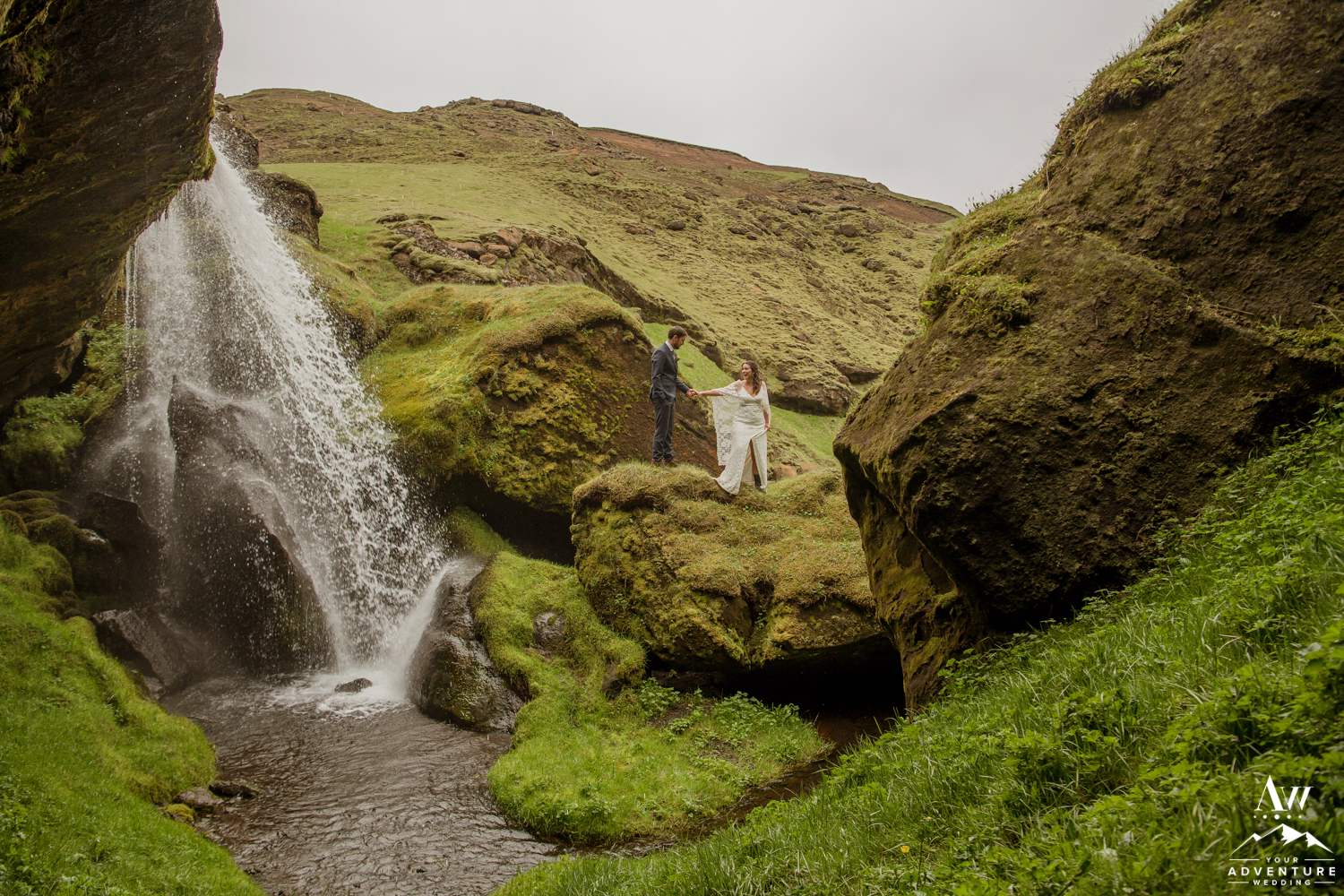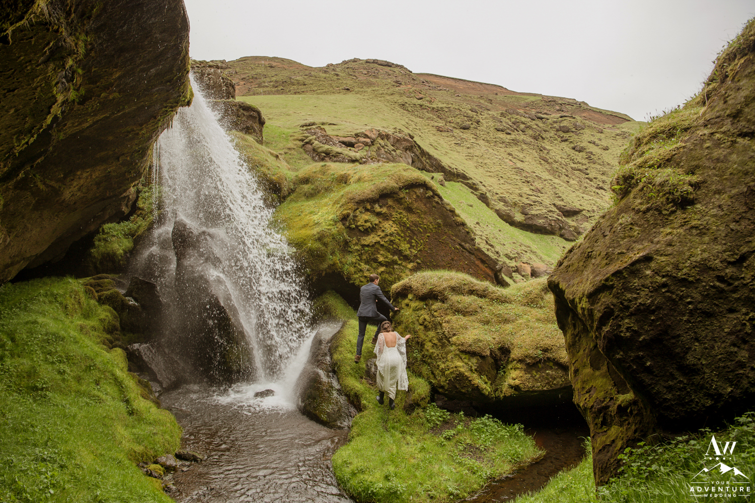 Moreover, people often find themselves obsessing over how green Iceland is. Erin and Julian were no different. Really wanting to have the complete “local” and private experience during their Iceland elopement, they could not wait to go exploring through a narrow canyon!