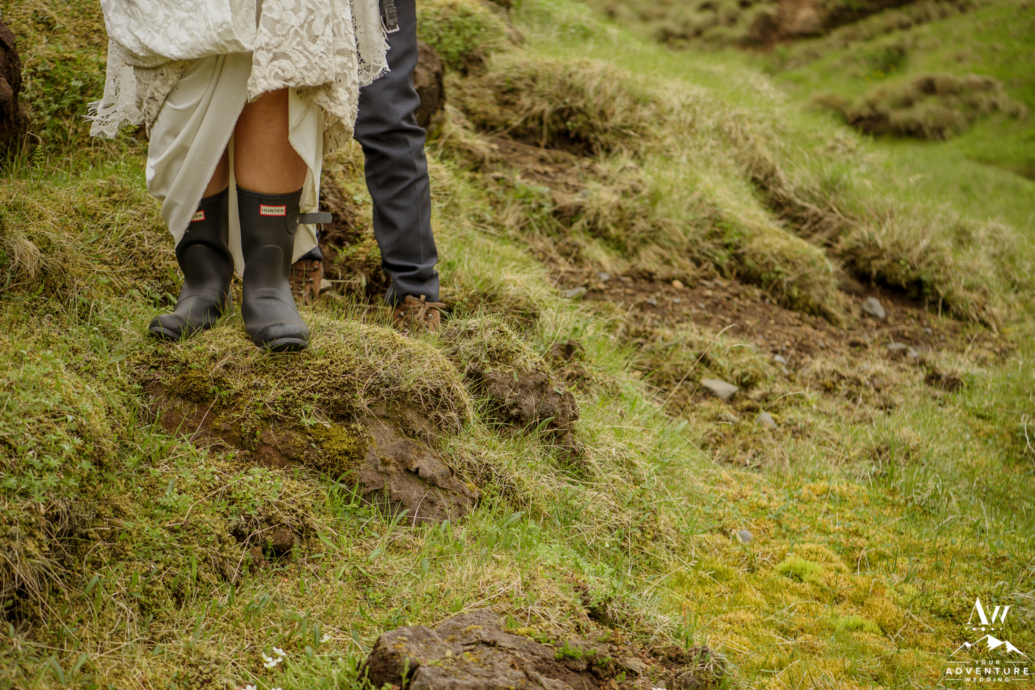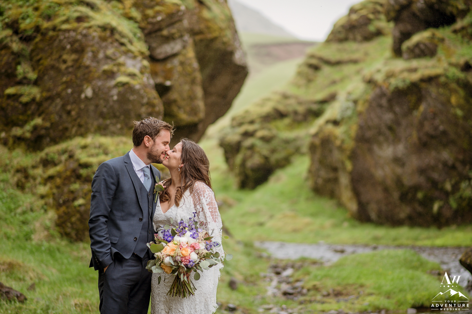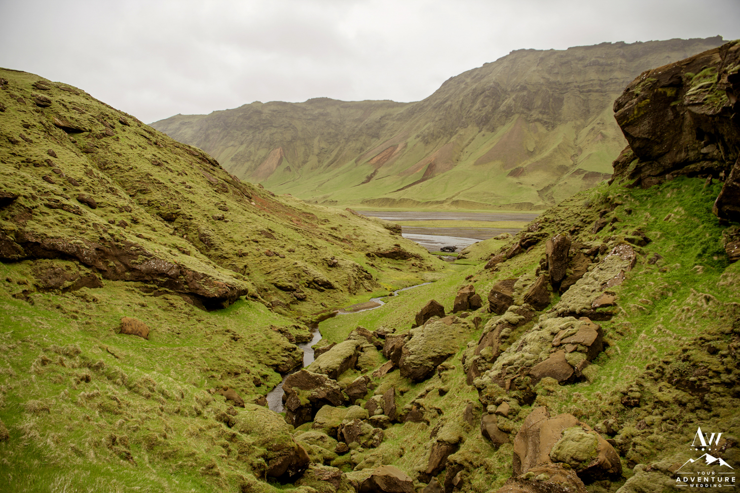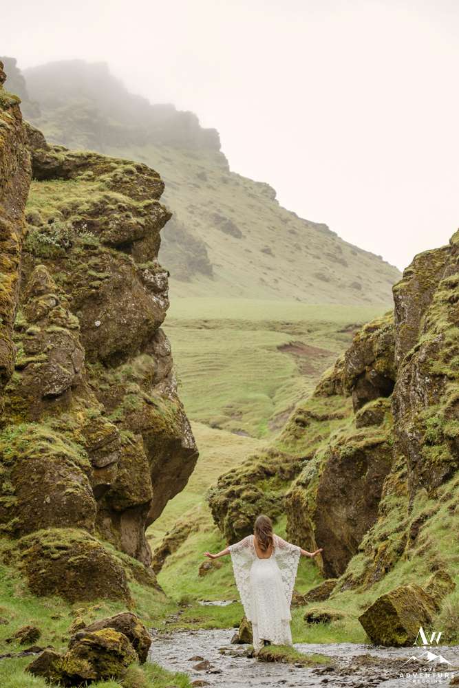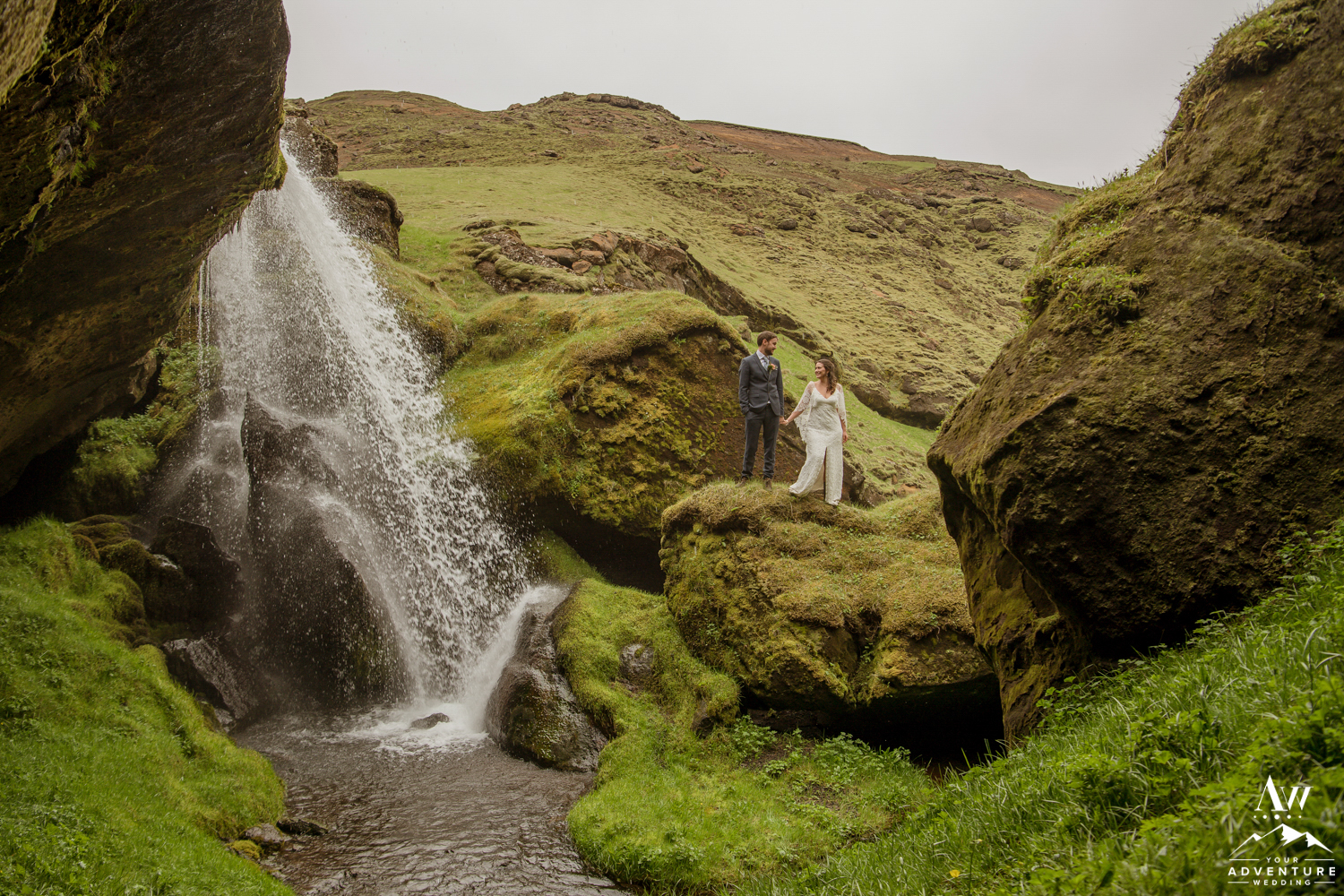 Moreover, people often find themselves obsessing over how green Iceland is. Erin and Julian were no different. Really wanting to have the complete “local” and private experience during their Iceland elopement, they could not wait to go exploring through a narrow canyon!