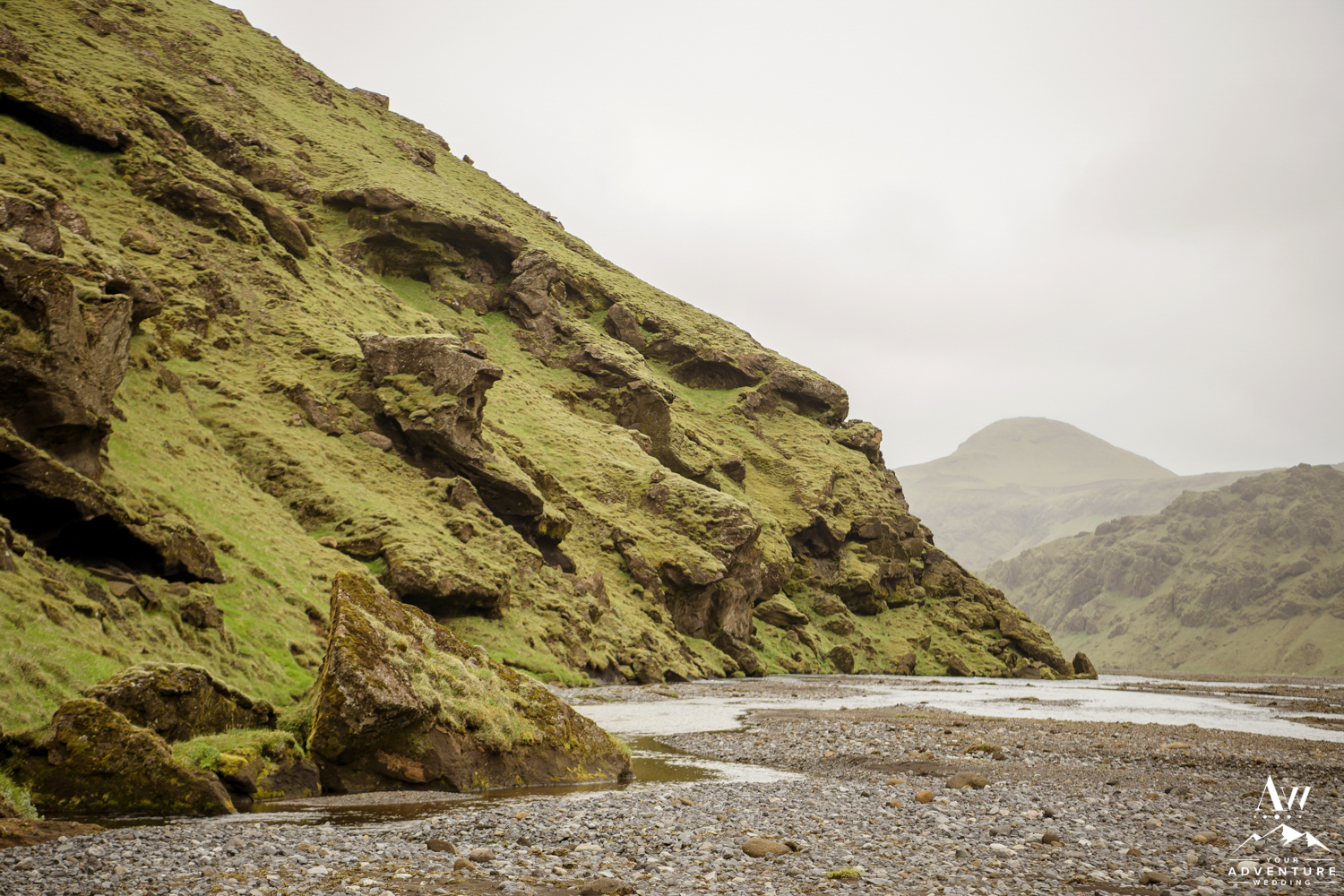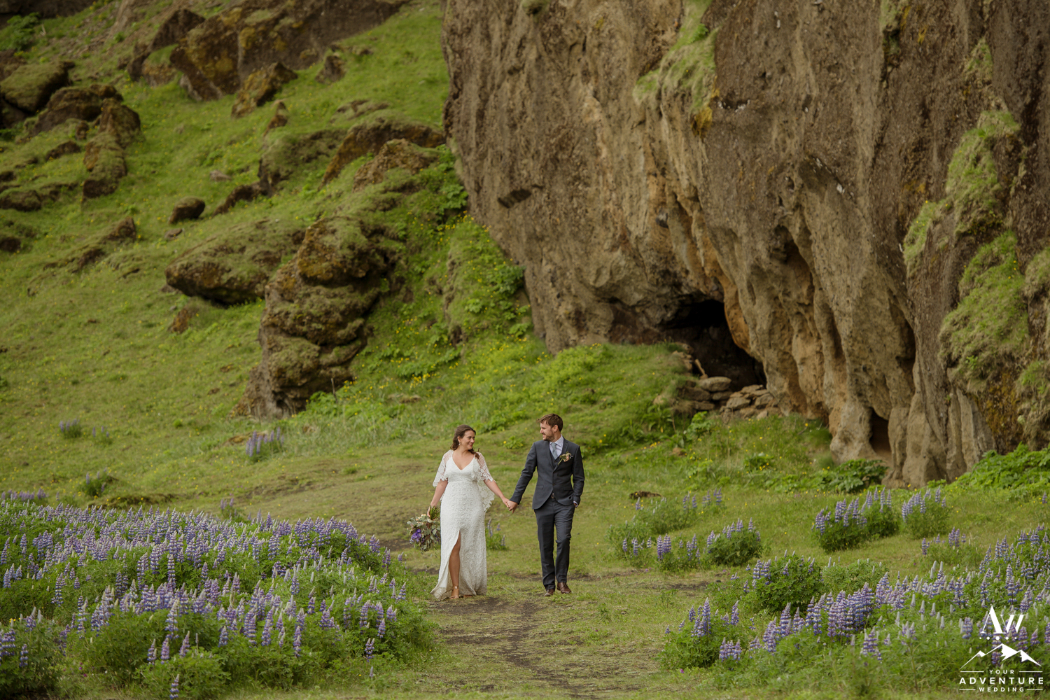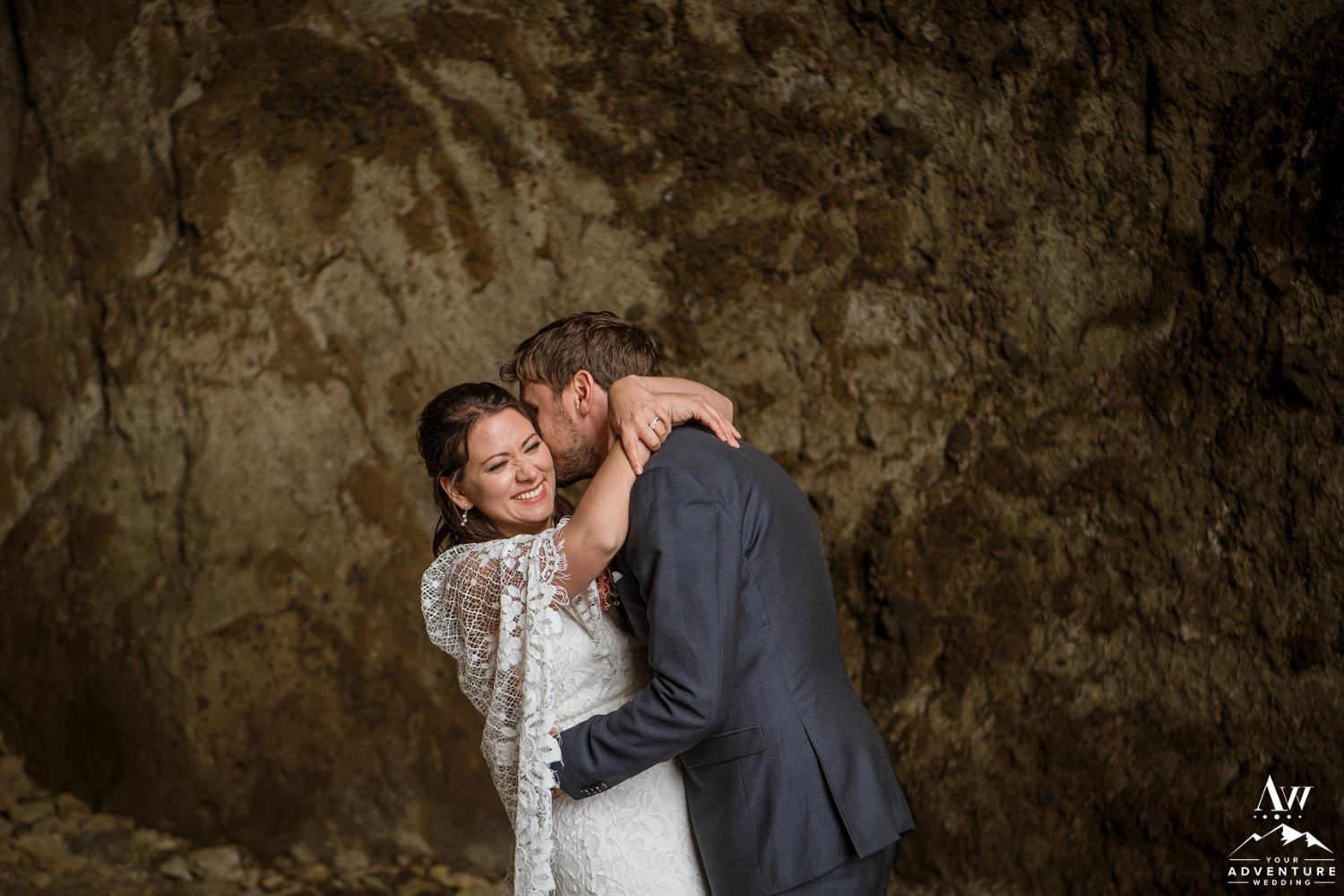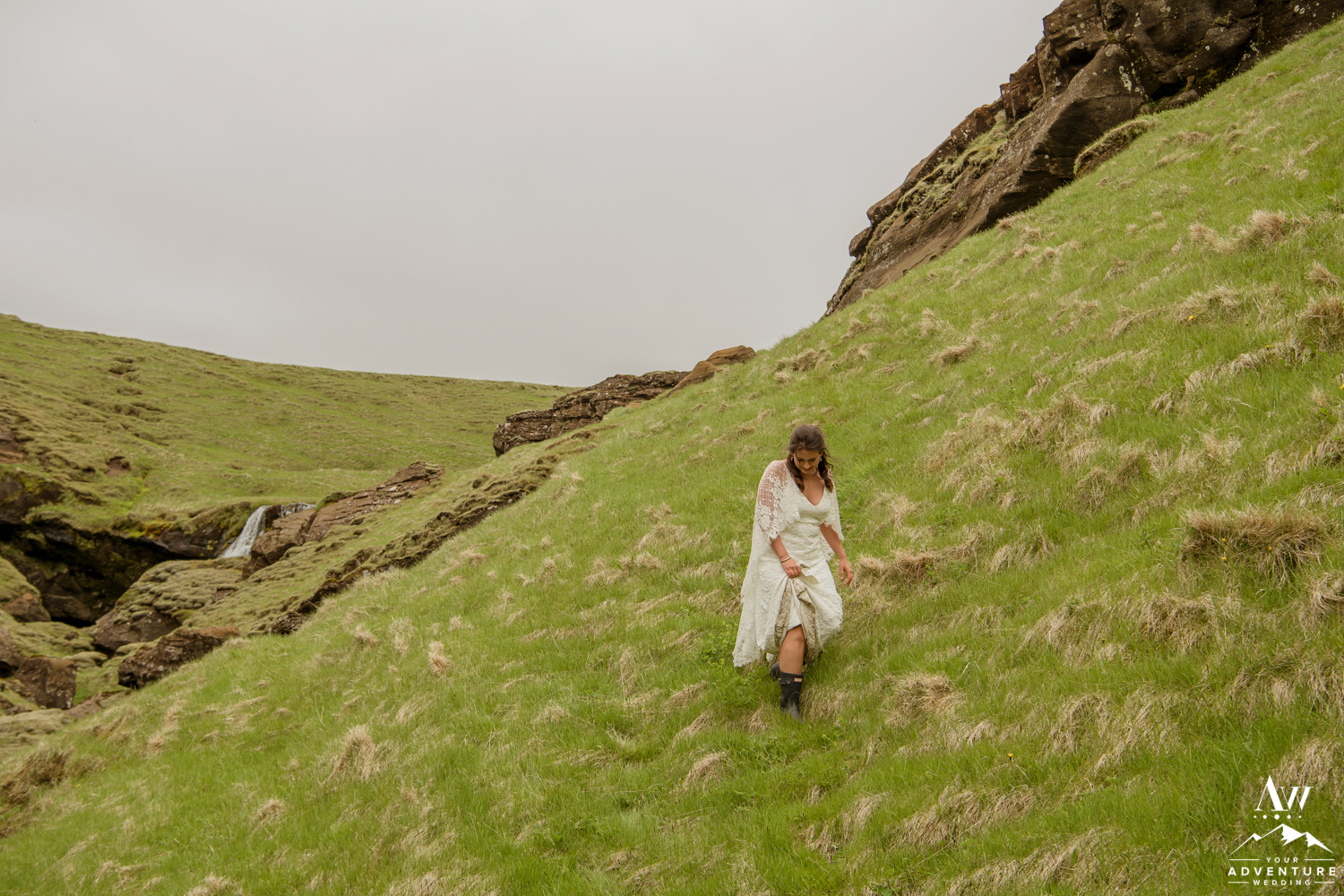 Moreover, people often find themselves obsessing over how green Iceland is. Erin and Julian were no different. Really wanting to have the complete “local” and private experience during their Iceland elopement, they could not wait to go exploring through a narrow canyon!