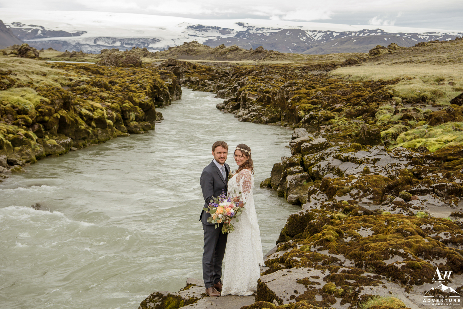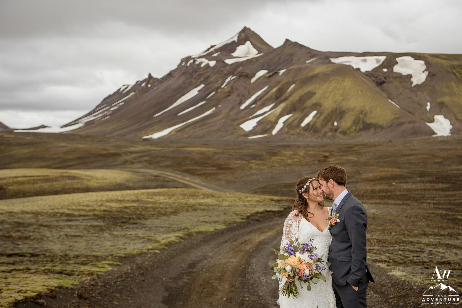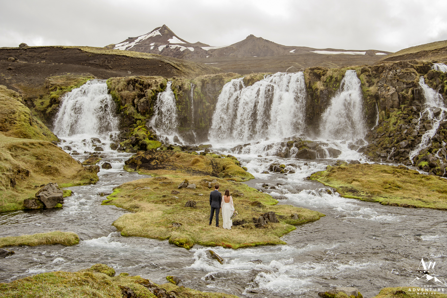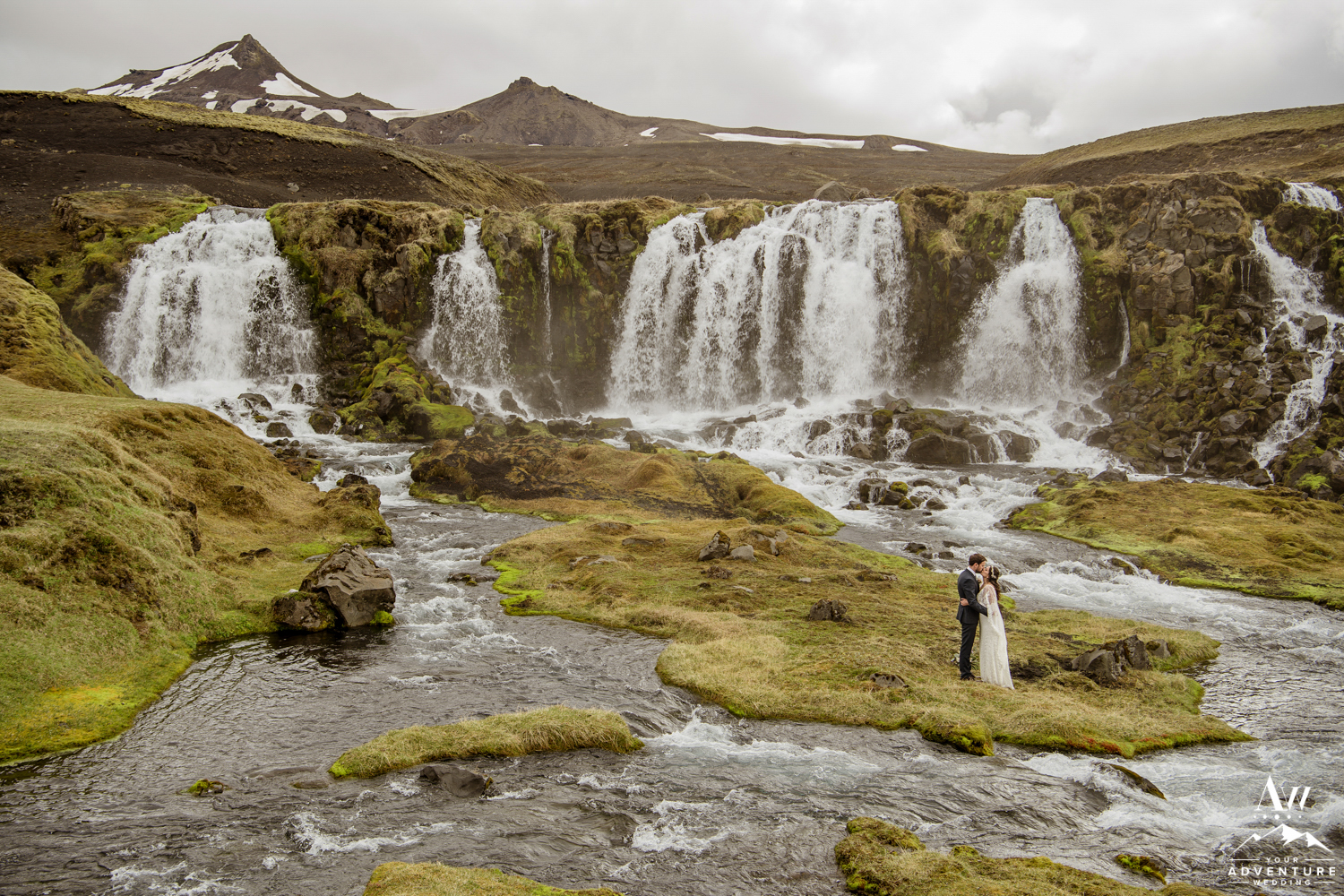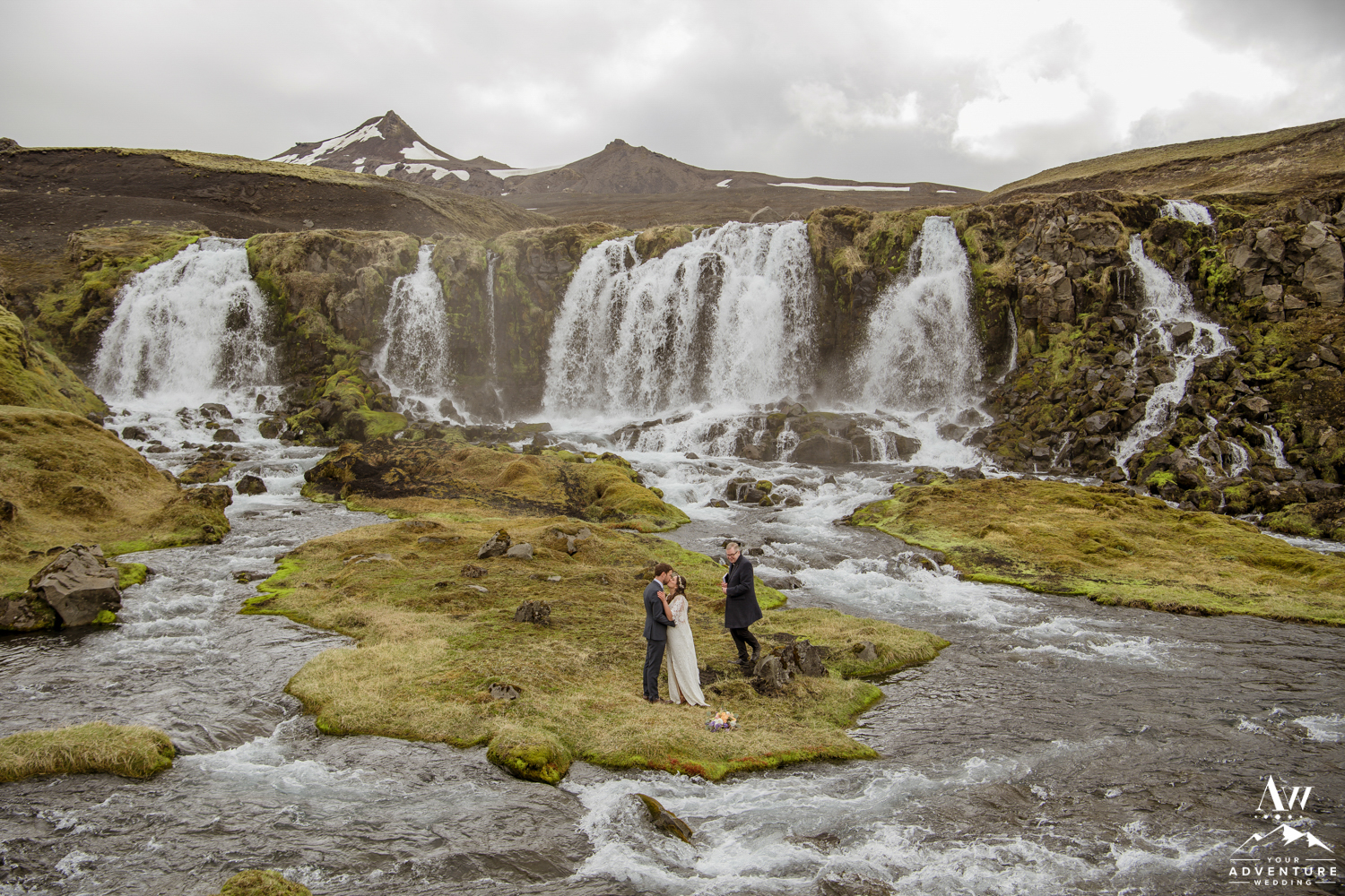 The drive to the highland waterfall is THE BEST! The super jeep splashes through rivers, lunar looking landscapes, a glacier, and crazy shaped mountains! Upon arriving to the waterfall area, Erin and Julian were super excited to choose their Iceland elopement ceremony location! Following, a local pastor performed their intimate and yet oh-so romantic wedding ceremony. It was truly unforgettable in the midst of the 360 views!