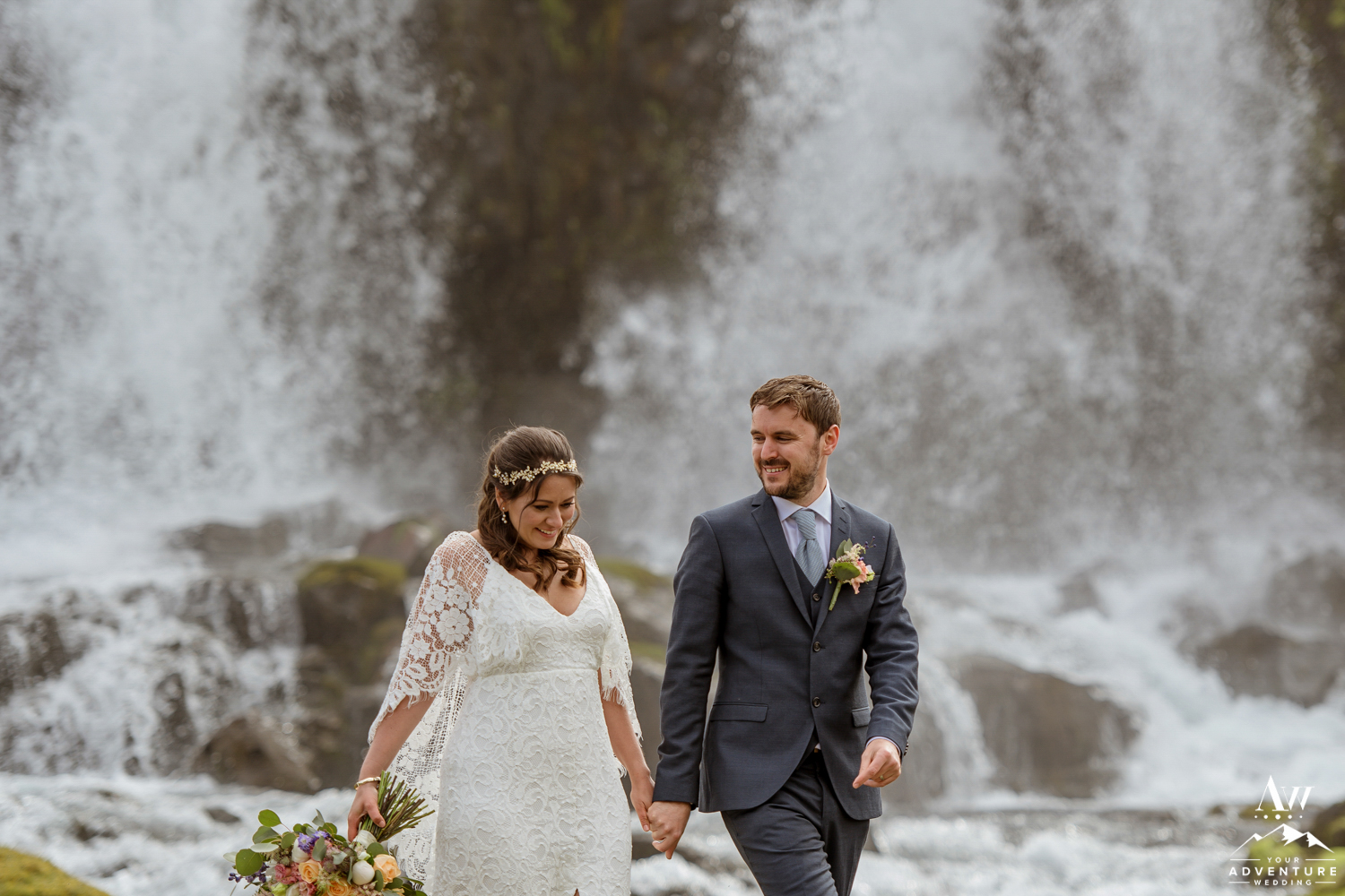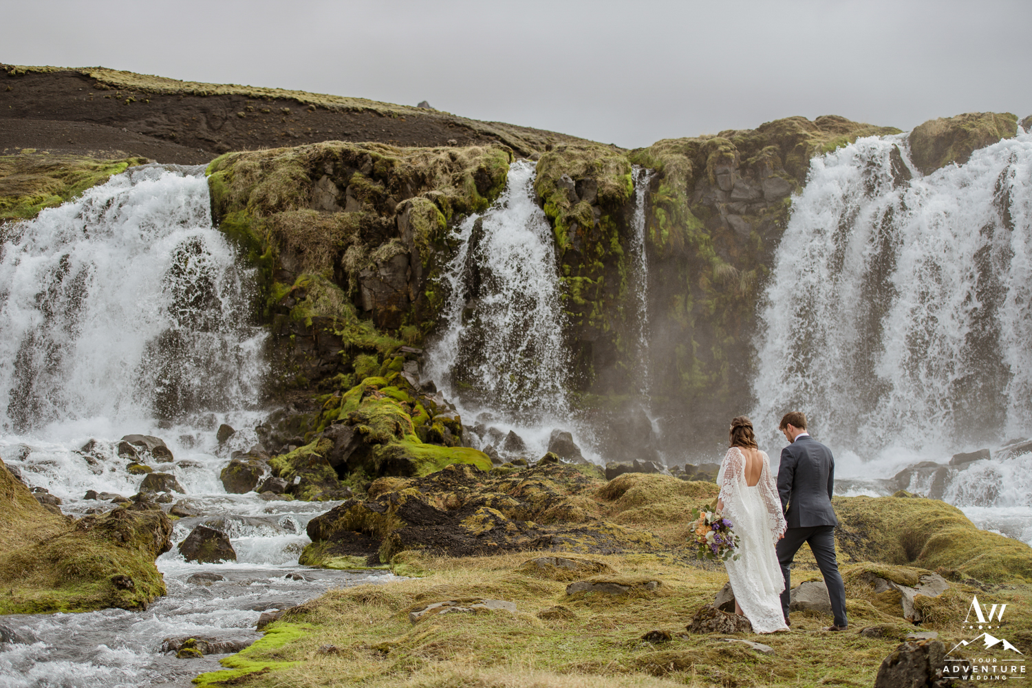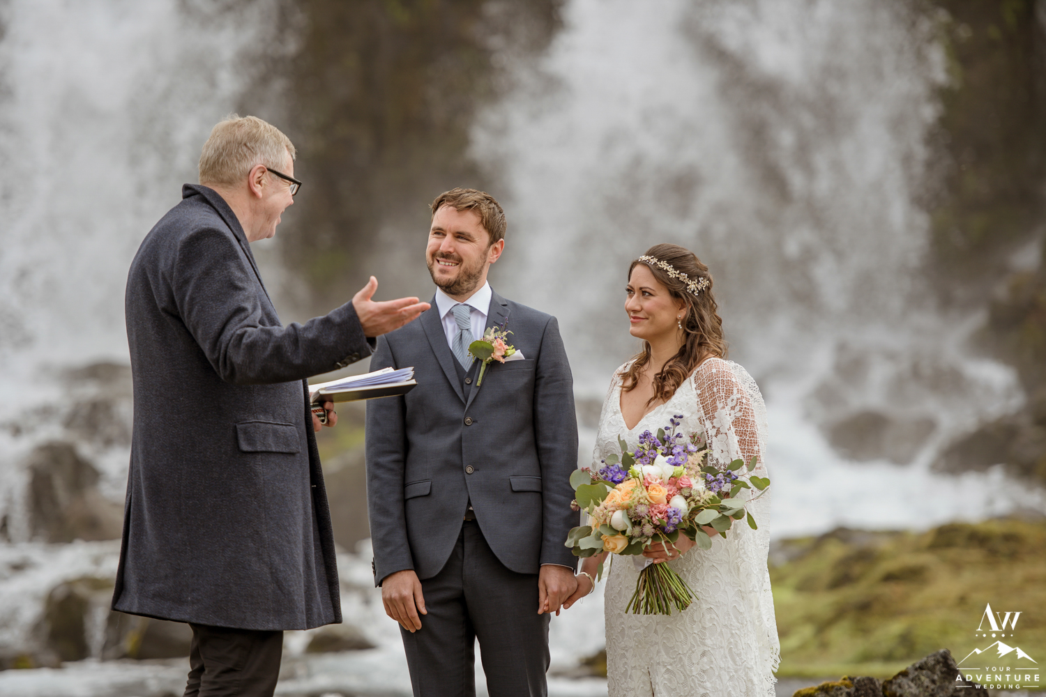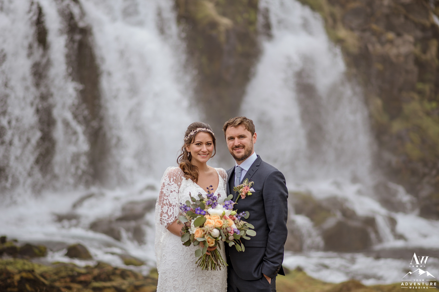 Julian and Erin loved how much there was to see and do at their ceremony location. There are 2 waterfalls that look totally different from each other, a vivid canyon, raging river, and amazingly shaped mountains! Pretty sure our Iceland elopement photographer was in total bliss photographing them within this landscape too!