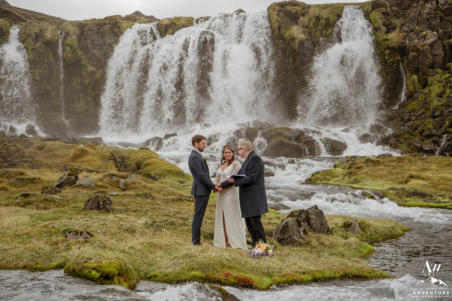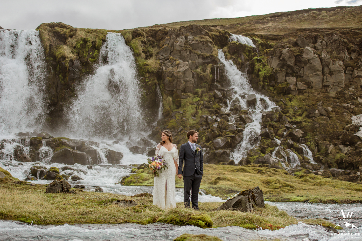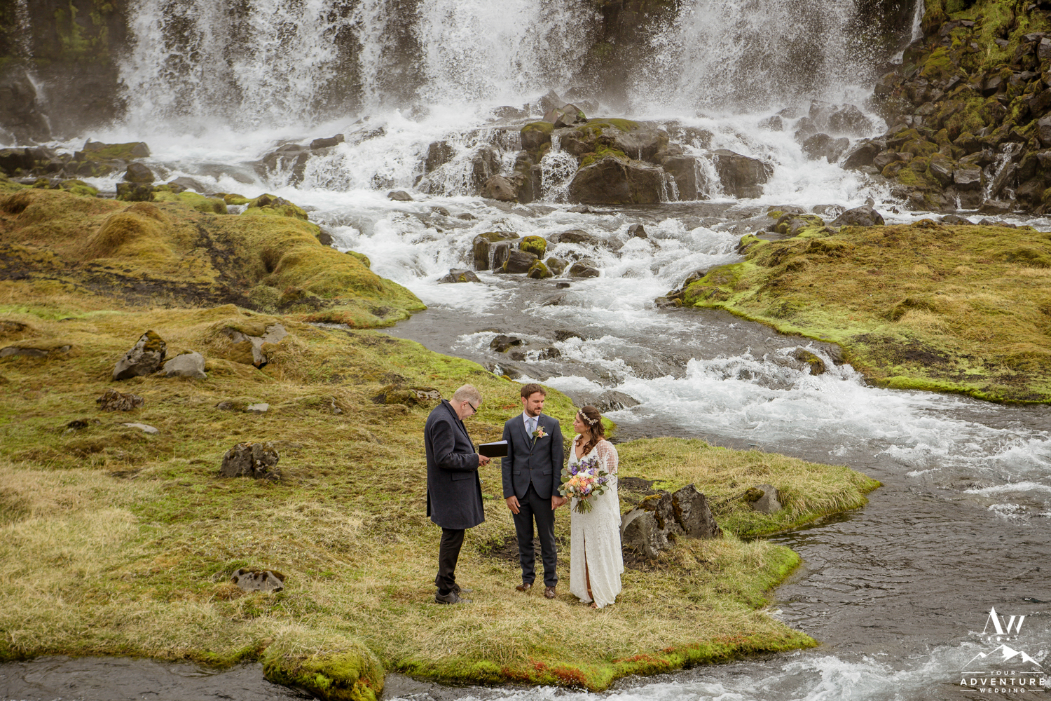Julian and Erin loved how much there was to see and do at their ceremony location. There are 2 waterfalls that look totally different from each other, a vivid canyon, raging river, and amazingly shaped mountains! Pretty sure our Iceland elopement photographer was in total bliss photographing them within this landscape too!