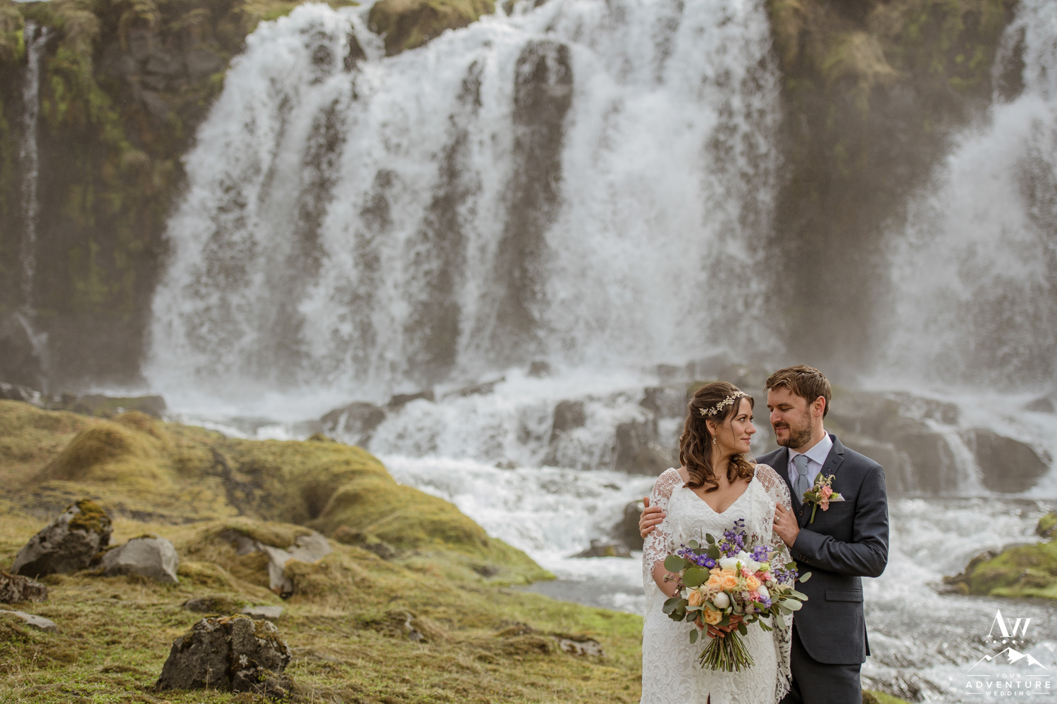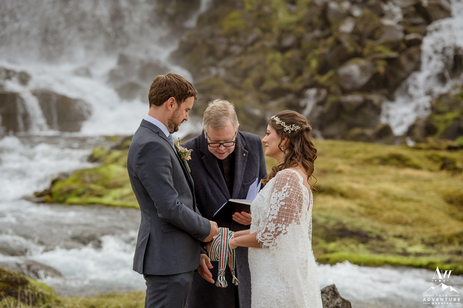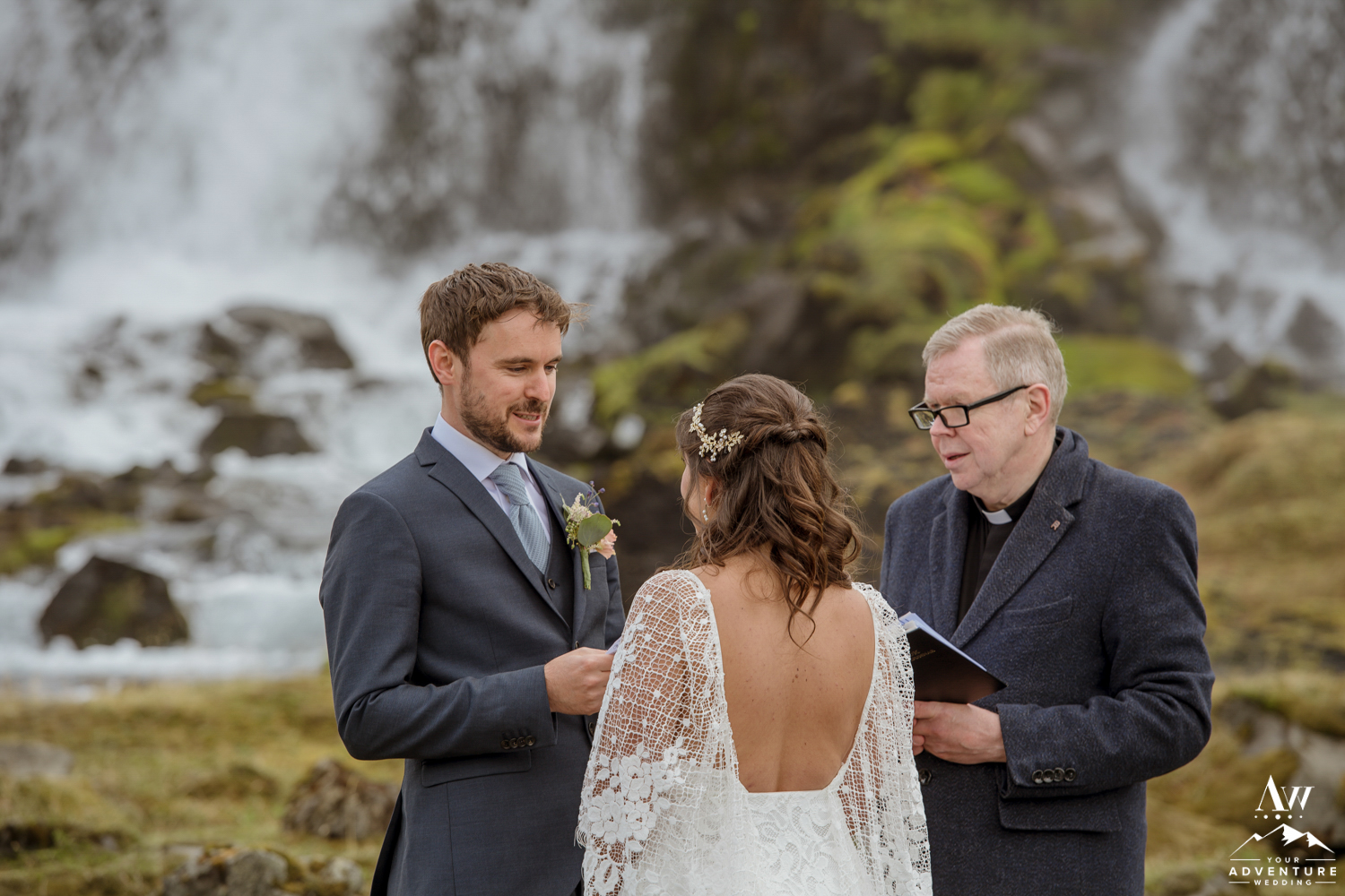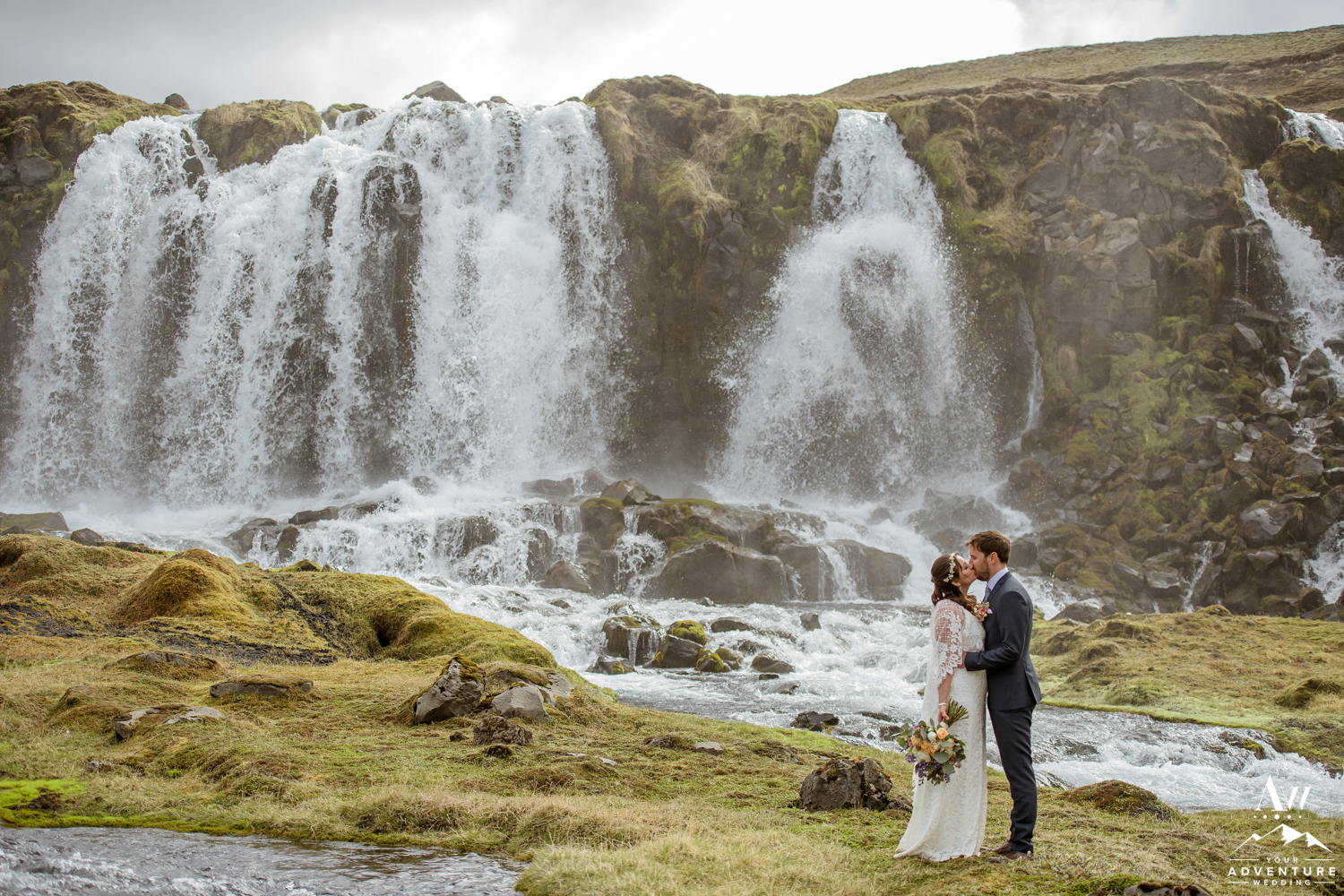 Julian and Erin loved how much there was to see and do at their ceremony location. There are 2 waterfalls that look totally different from each other, a vivid canyon, raging river, and amazingly shaped mountains! Pretty sure our Iceland elopement photographer was in total bliss photographing them within this landscape too!