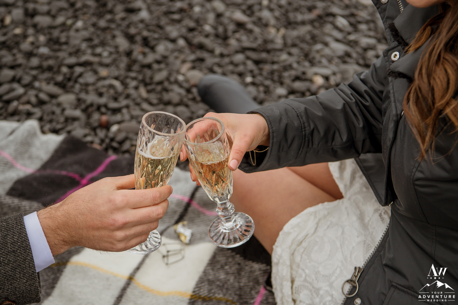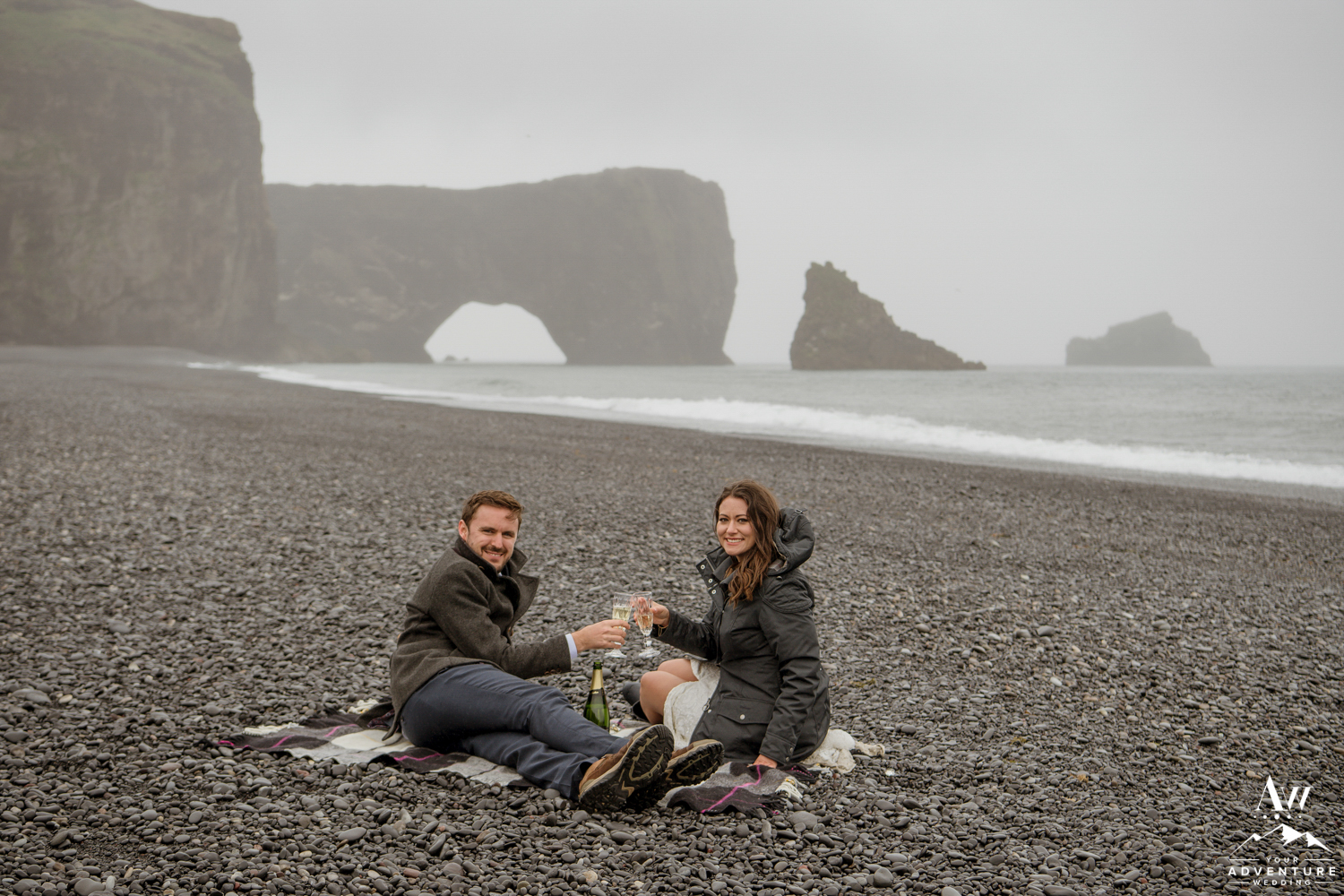 Next on the agenda for Erin and Julian was to adventure to a volcanic black sand beach to have a little luxury Iceland elopement picnic! #yesplease! Being able to relax and literally be in the moment with your partner is important. Your wedding day goes super fast so take time to savor it!
