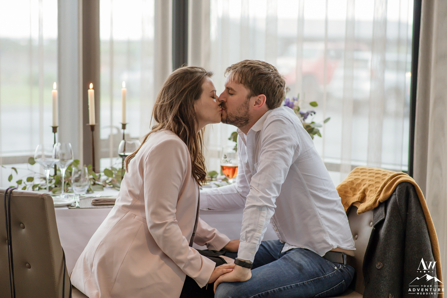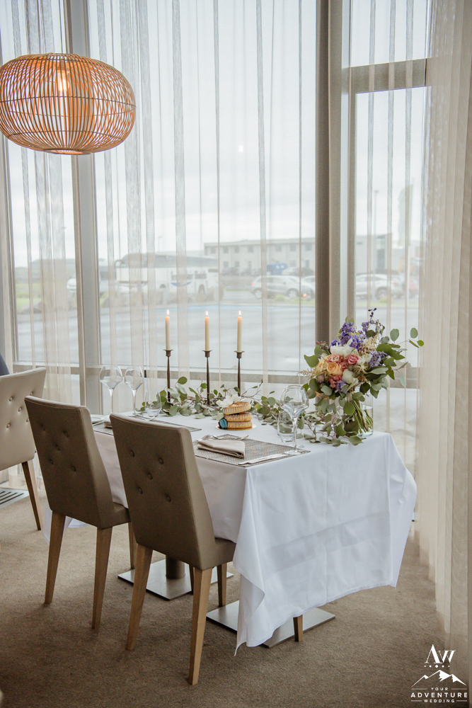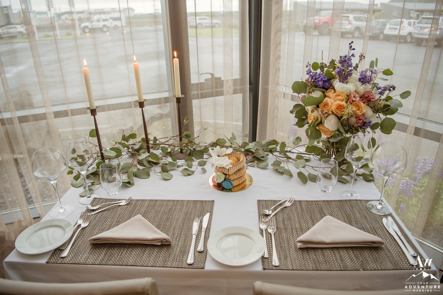 With the day turning into the evening, these two were ready to take a little break between their 10 hours of adventure and their Iceland wedding dinner. Erin and Julian wanted to have a bit more upscale dining, so they delighted in a fantastic menu at The Berg in Vik. With a sweetly styled table for two they celebrated their newly wedded bliss over a delicious dinner complete with a traditional Iceland wedding cake too!