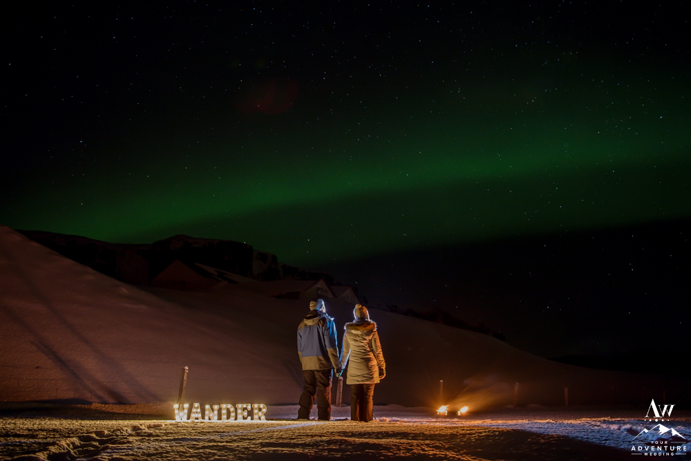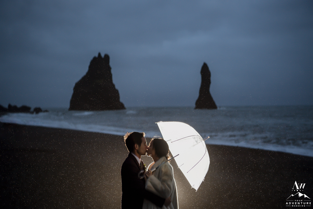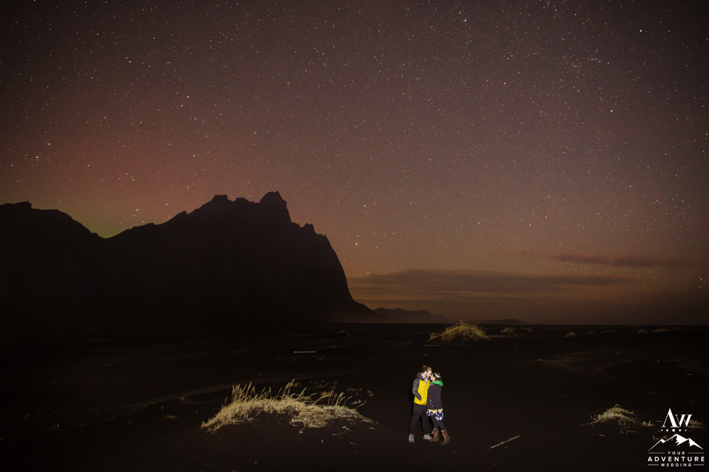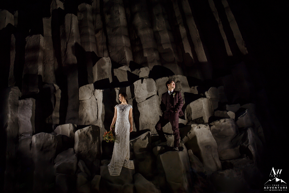 Although, we try to stay away from typical tourist locations when we craft our adventure wedding itineraries, having night wedding photos at them can be magical! For example, this fabulous location is Reynisfjara Black Beach and Reynisdrangar Basalt Stacks in Iceland. But do make sure you double check weather conditions and if any permits or permissions are needed before you venture to an iconic tourist location at night.
