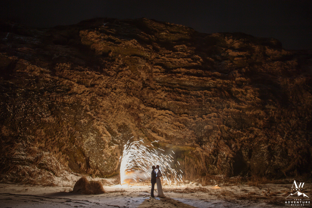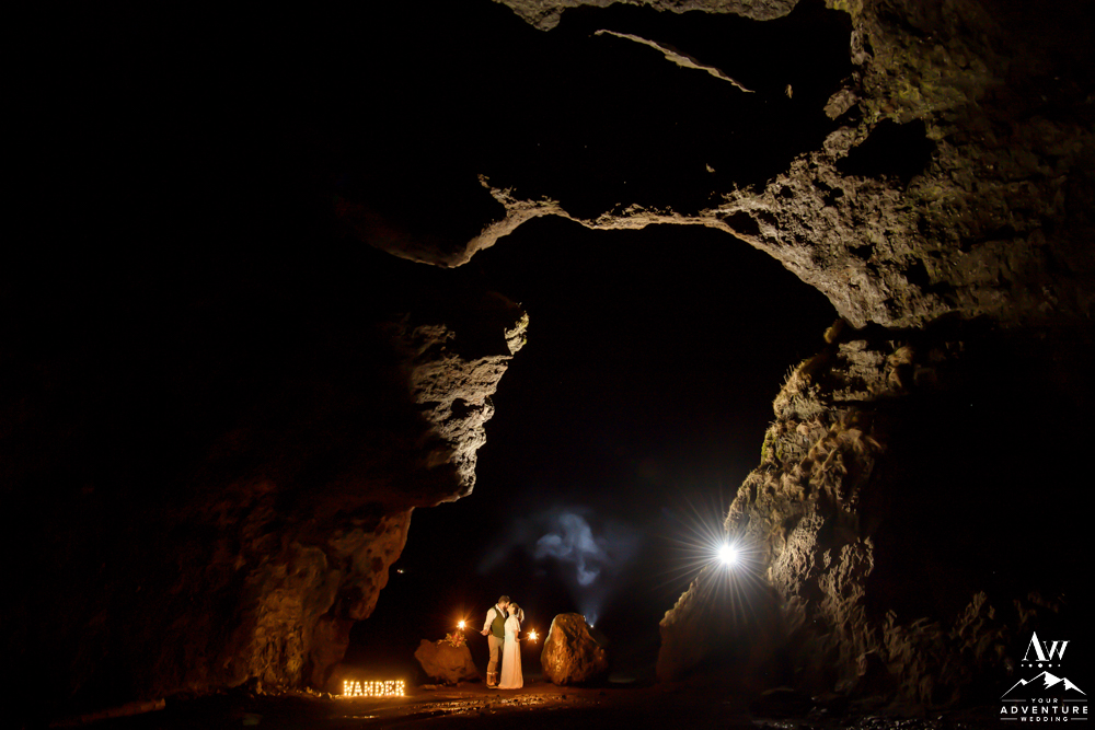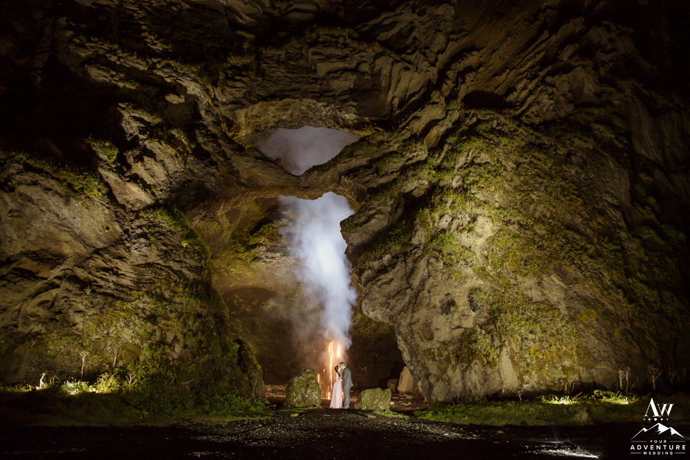 Caves throughout the world have created shelter from the elements. Firstly, exploring a cave as the last thing you do on your adventure elopement night is also very exciting! Secondly, adding a bit more drama to the situation by ground fireworks or sparklers can also amp up the energy level too!