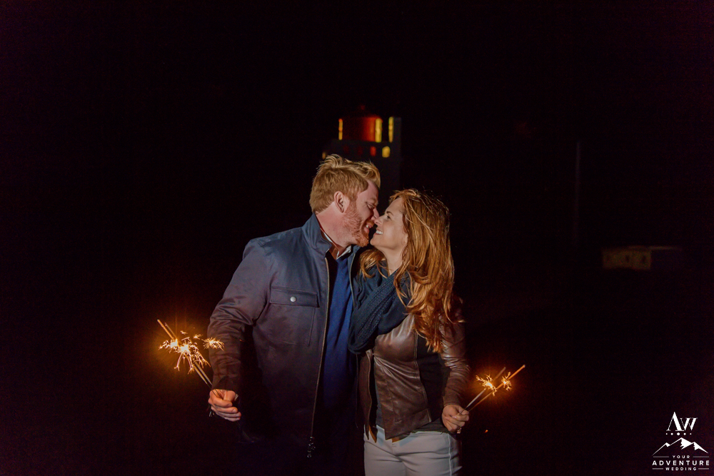 Lastly, how about adding in some warm ambiance with sparklers! Night wedding photos with sparklers add romance to the remaining moments of your adventure!