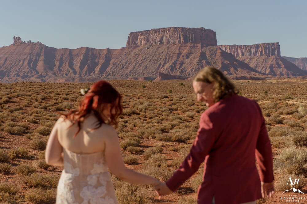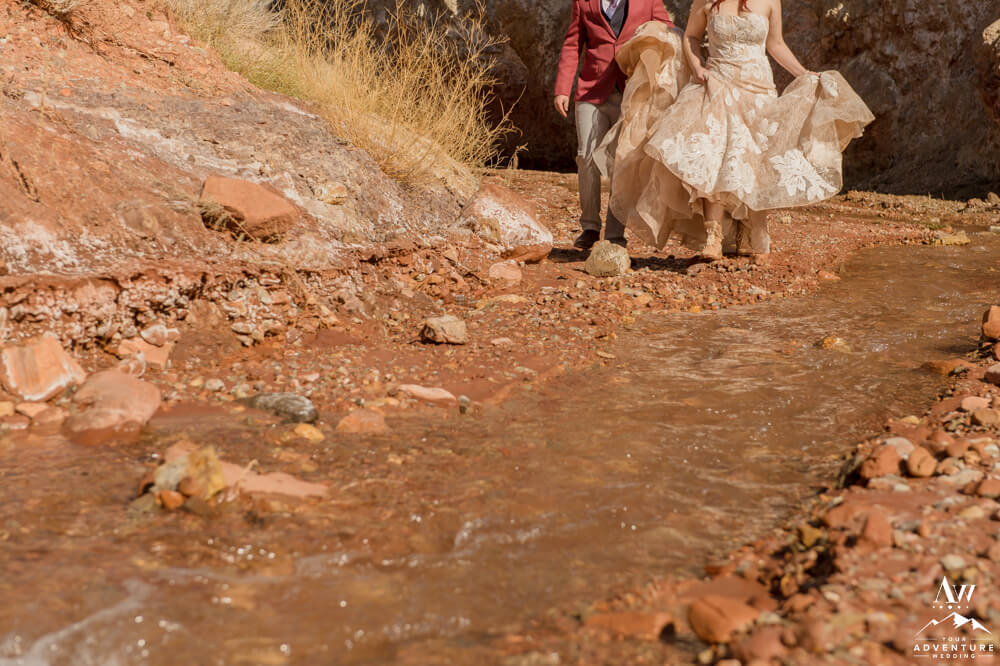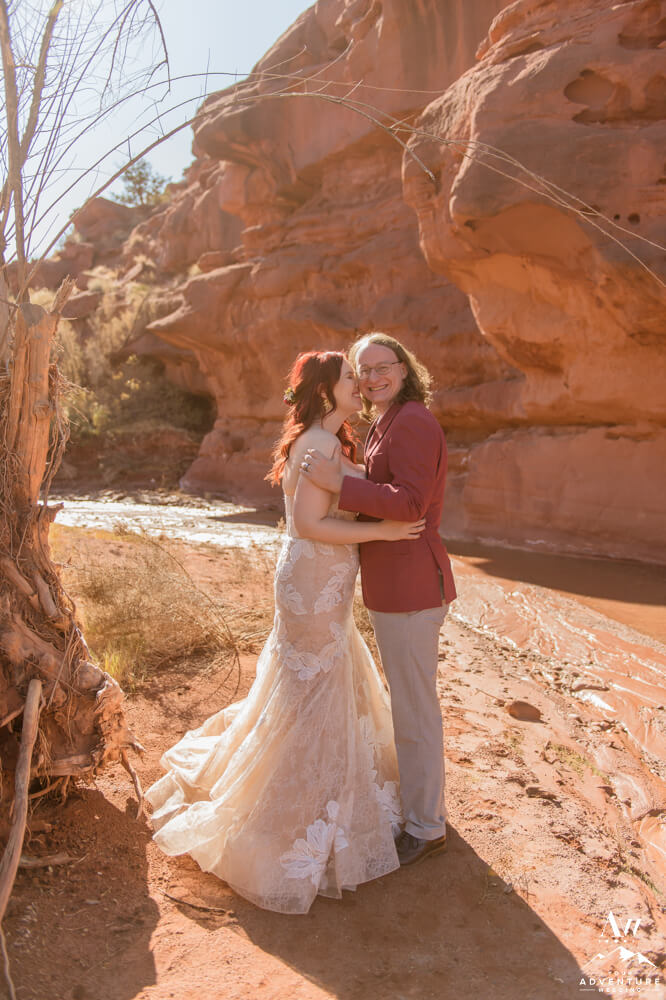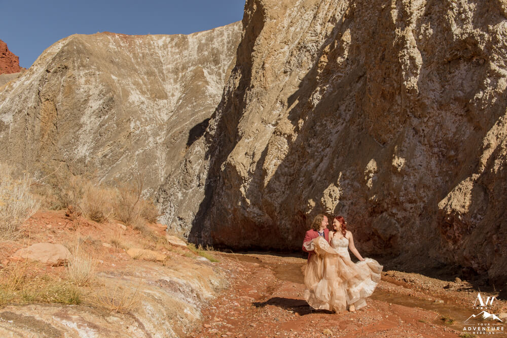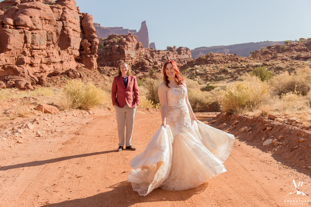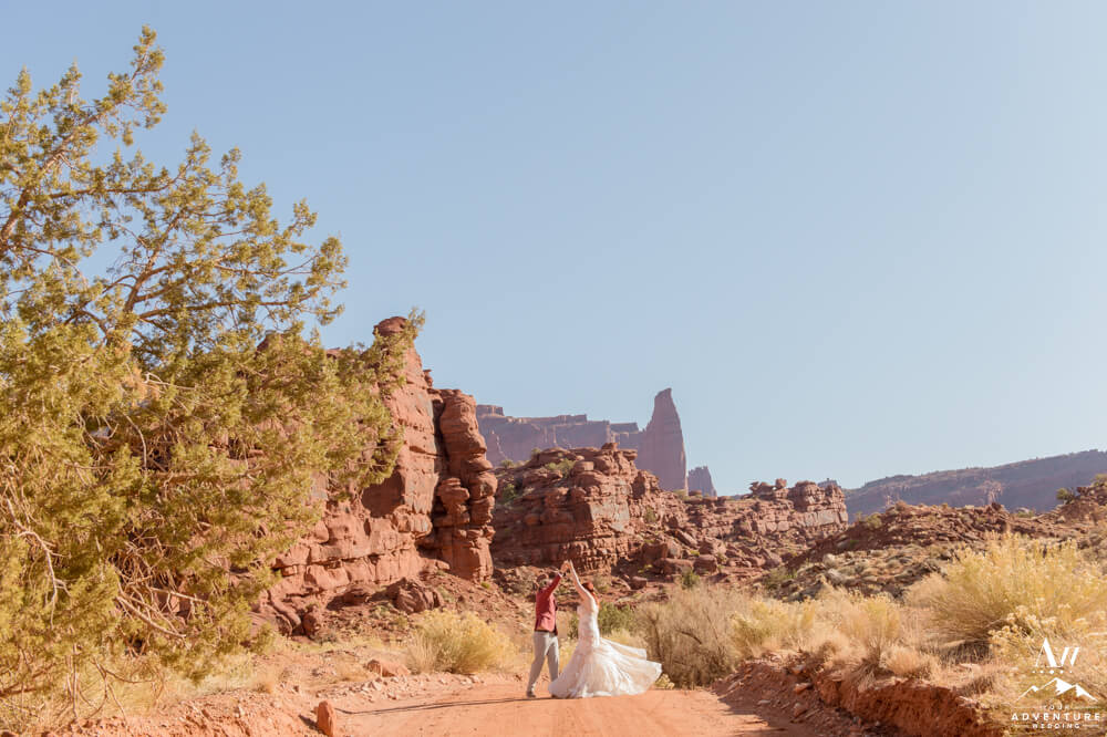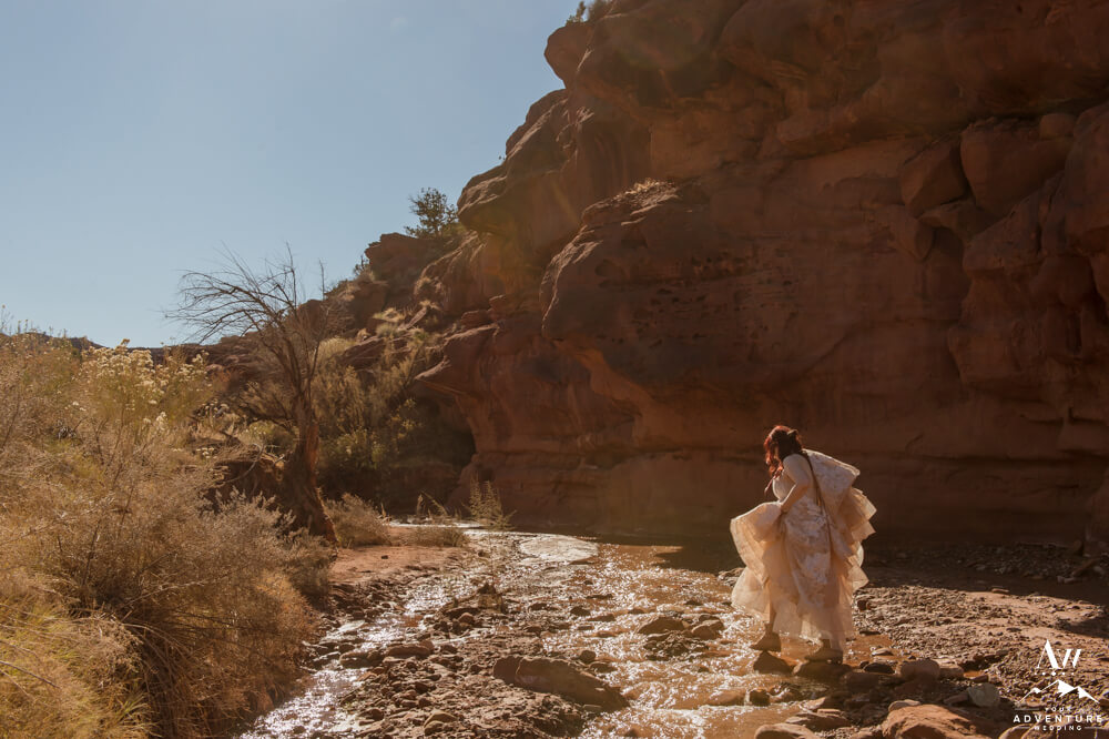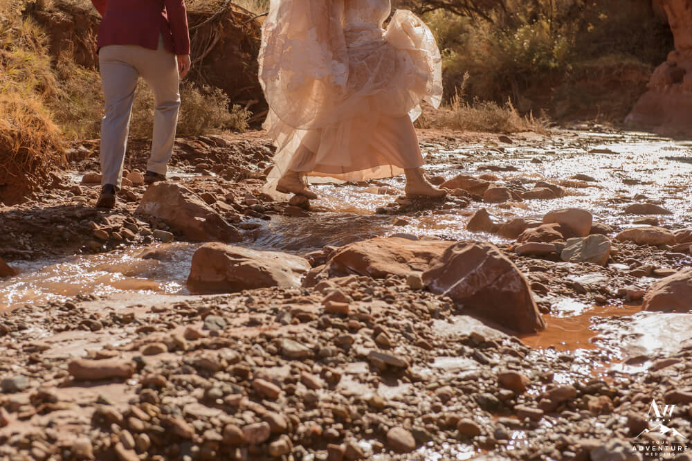 A level of adventure always flows throughout our weddings and elopements. For example, whether it be having a hiking element, a 4×4 or super jeep as transport, or crossing rivers by your own two feet you’ll savor every single second! Plus our very talented Moab Utah elopement photographer is thrilled to capture the journey all along the way.