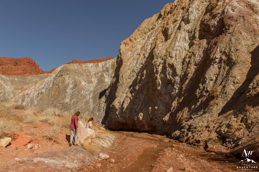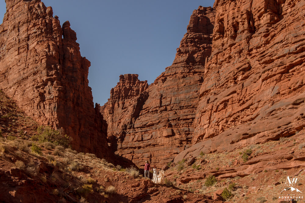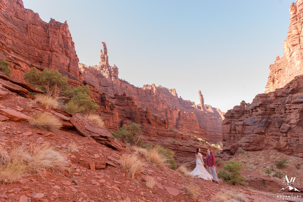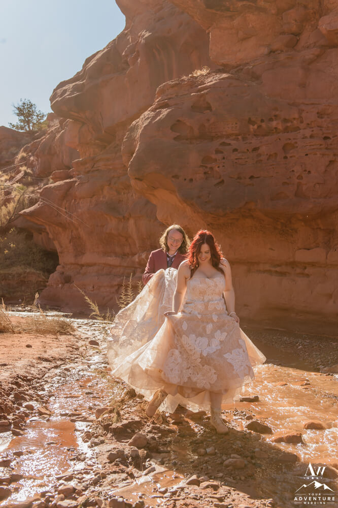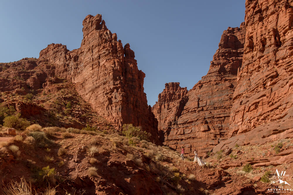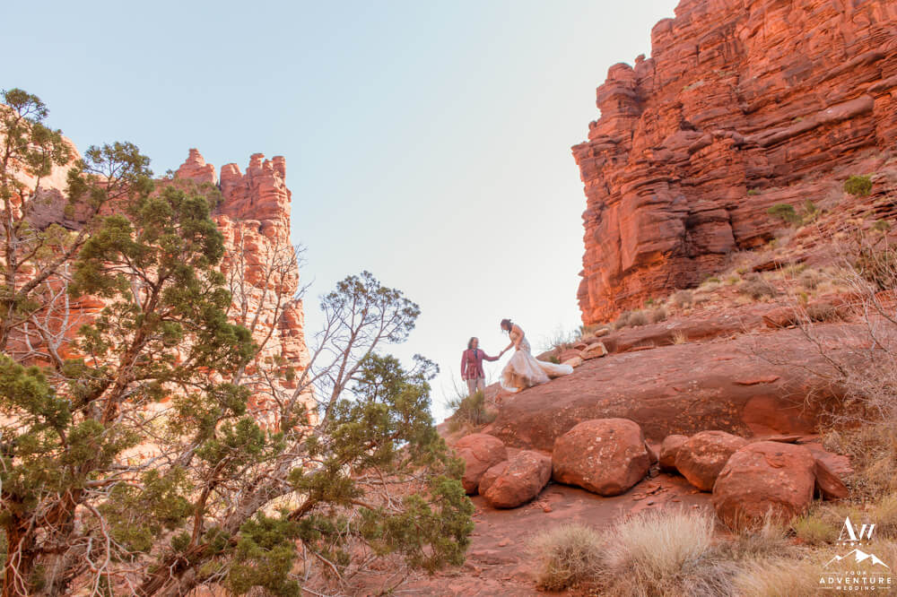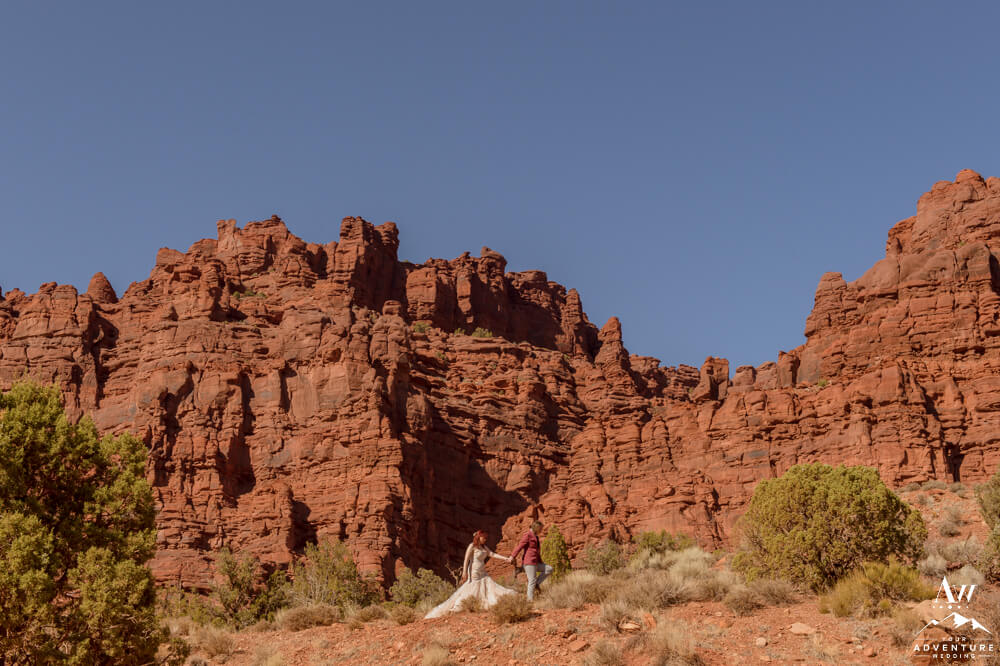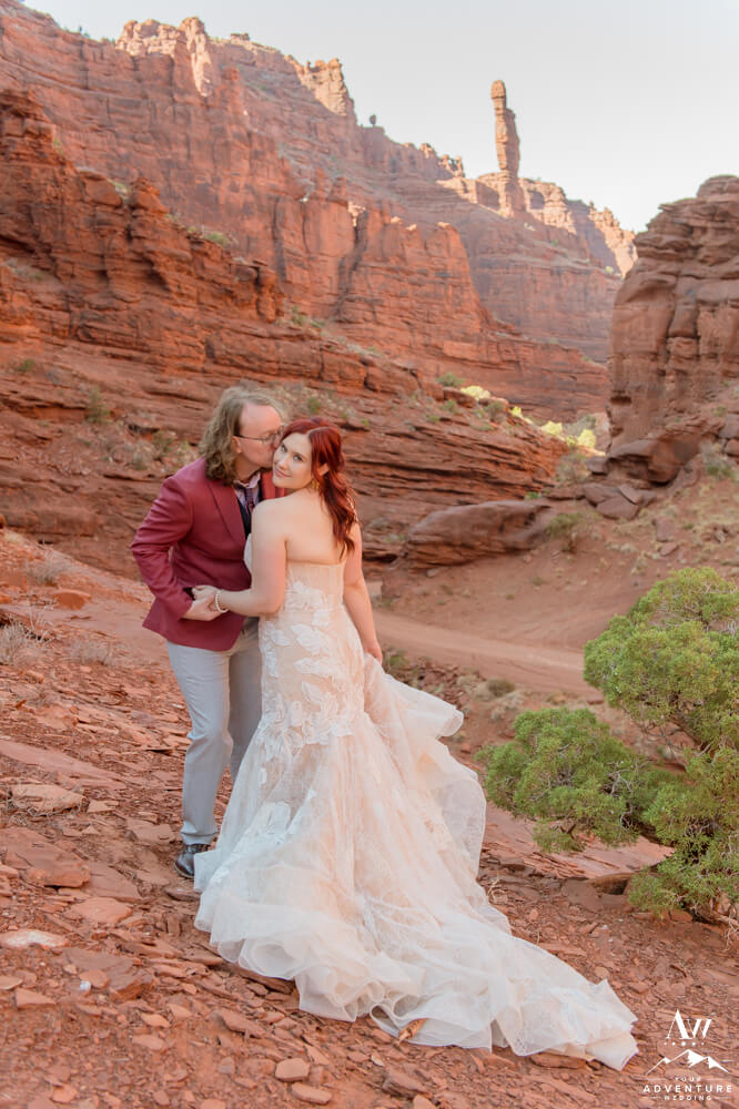 A level of adventure always flows throughout our weddings and elopements. For example, whether it be having a hiking element, a 4×4 or super jeep as transport, or crossing rivers by your own two feet you’ll savor every single second! Plus our very talented Moab Utah elopement photographer is thrilled to capture the journey all along the way.