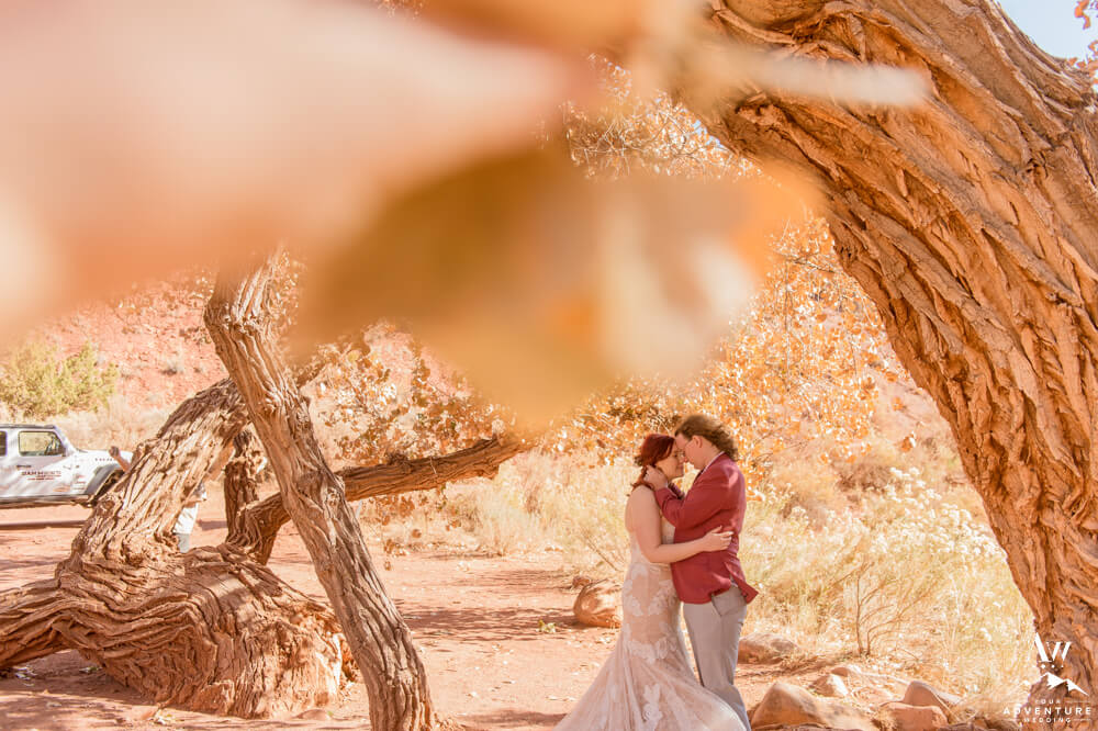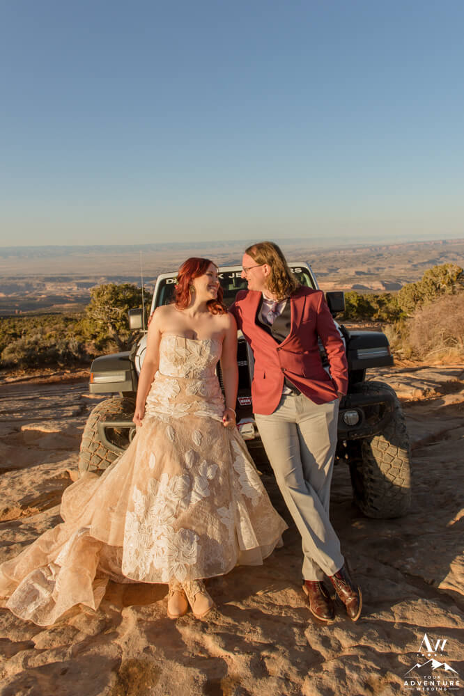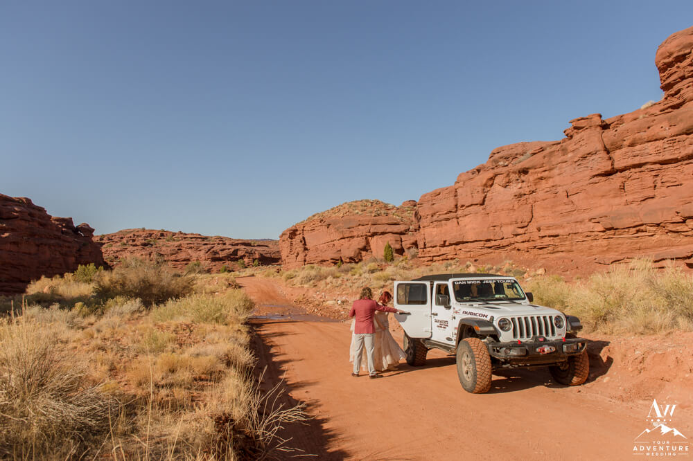 Therefore, after their beautiful morning Moab Utah elopement ceremony, these two climbed into a jeep for the day. Why? To illustrate, for 4×4 rock crawling adventures!
