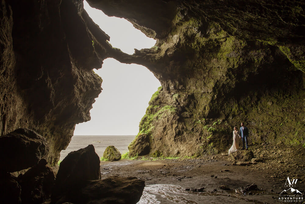 Sneaking away to a private cave among a black sand desert is thrilling. So savor the quite, the romance that emerges, and the remoteness just as these two did during their waterfall elopement day!