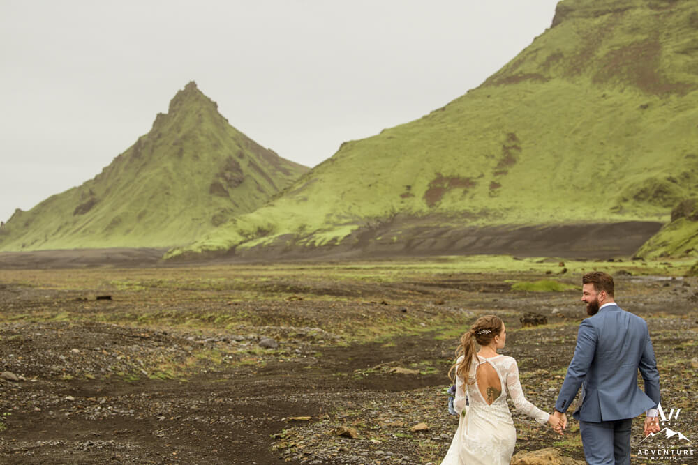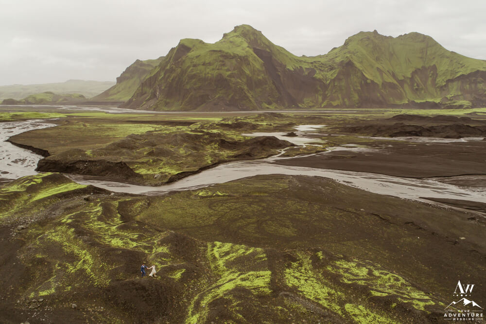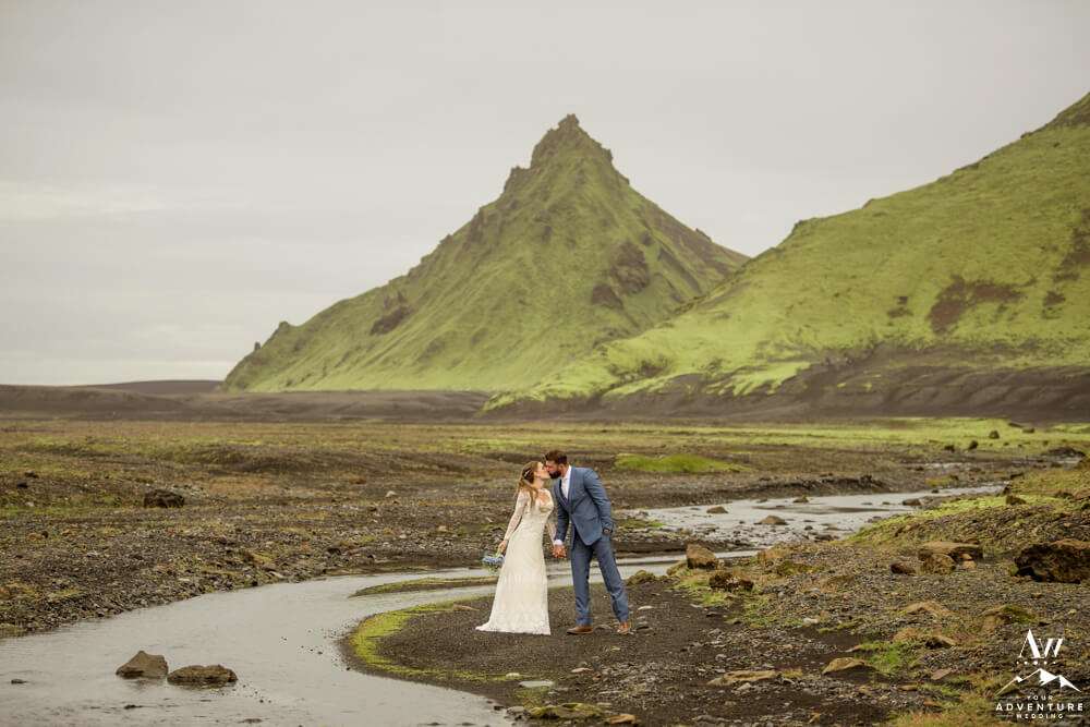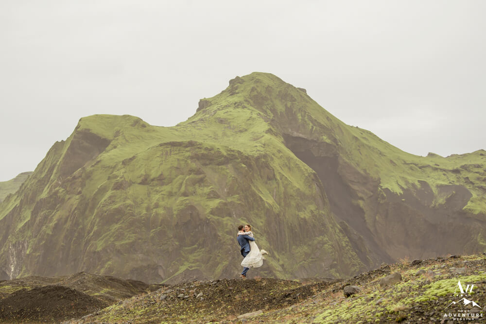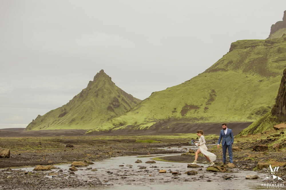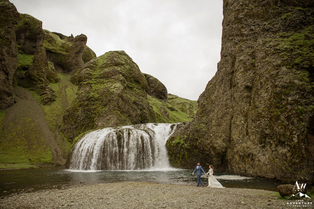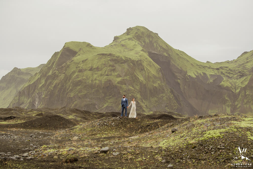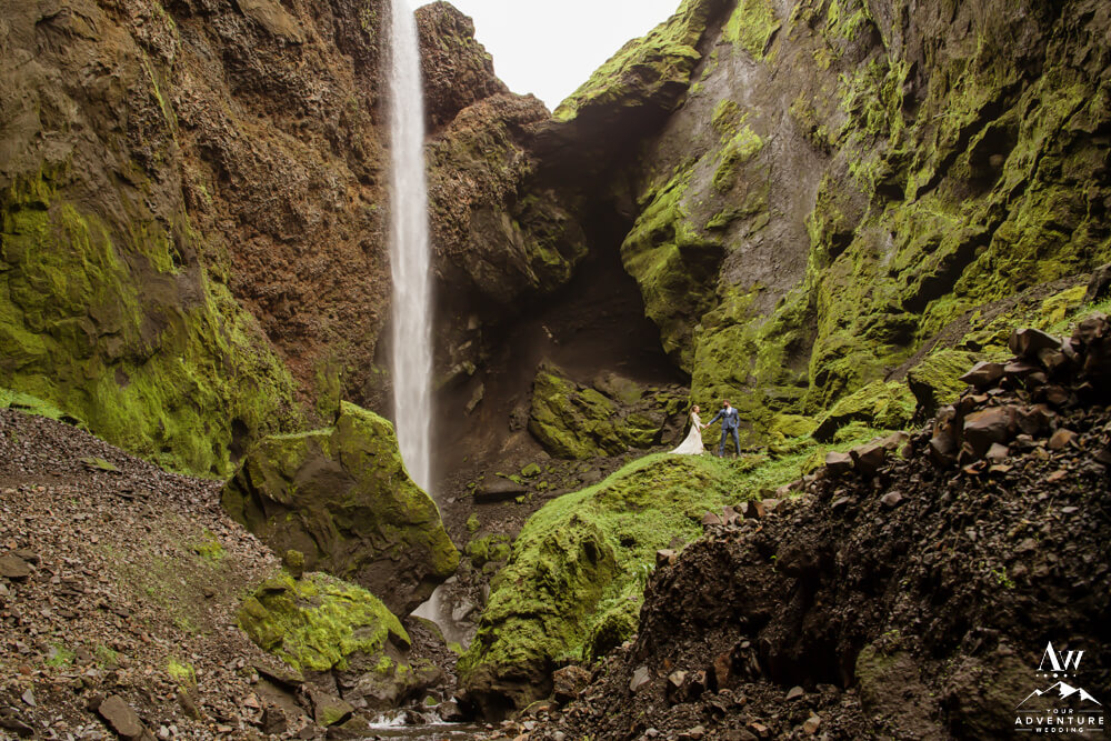 Couples flock to Iceland during the summer months (June-August) to experience the crazy greens that live in the Icelandic highlands. The shapes, the colors, and textures leave you really inspired by nature. Chad and Amanda had so much fun exploring around the area during their waterfall elopement!