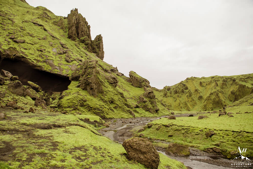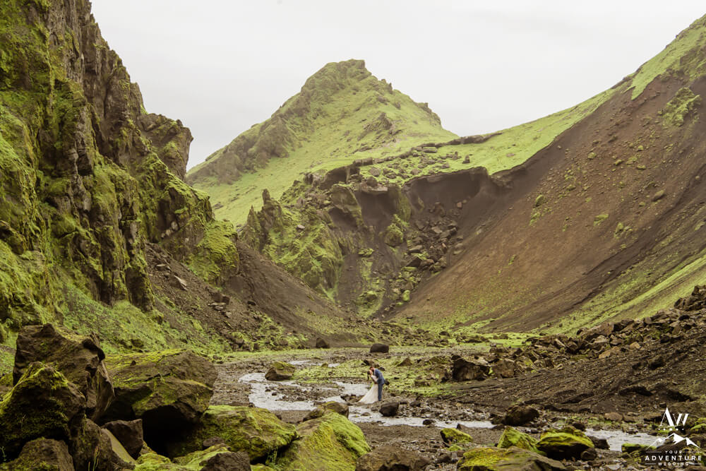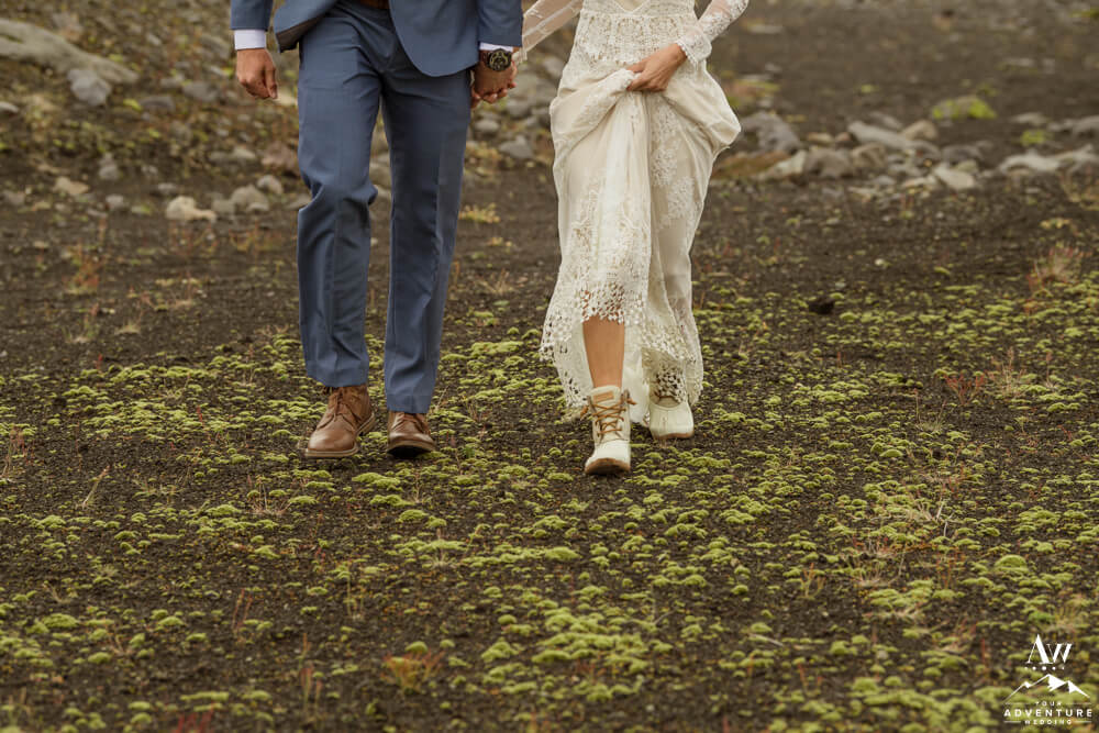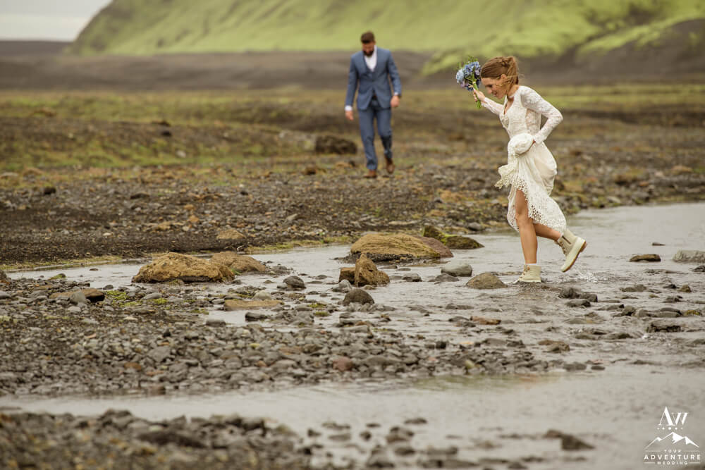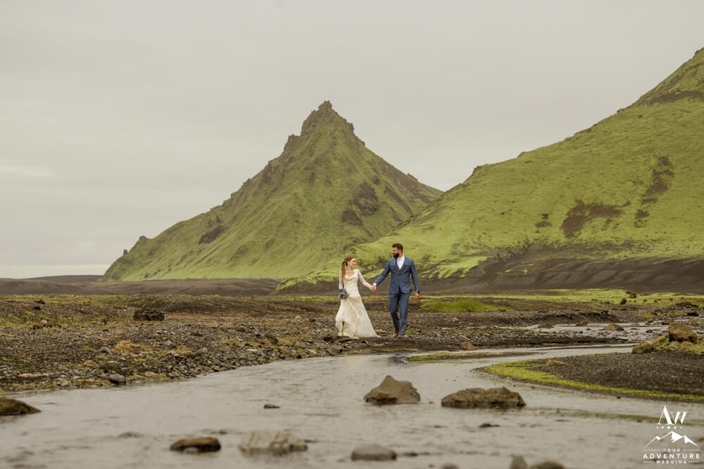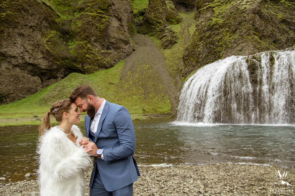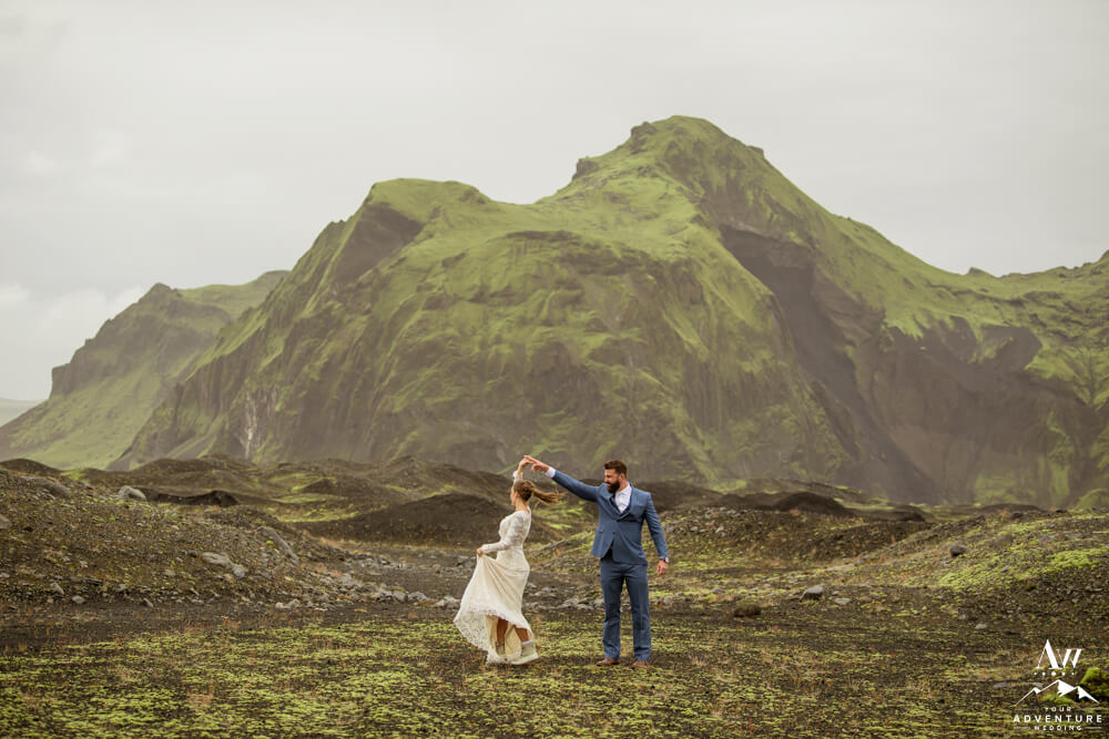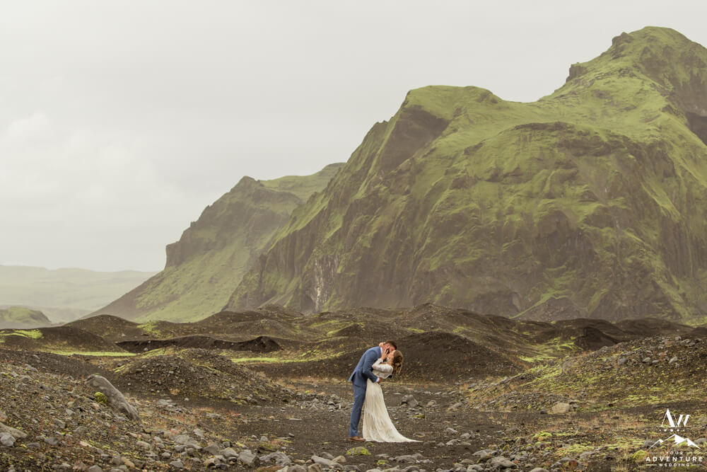 Couples flock to Iceland during the summer months (June-August) to experience the crazy greens that live in the Icelandic highlands. The shapes, the colors, and textures leave you really inspired by nature. Chad and Amanda had so much fun exploring around the area during their waterfall elopement!
