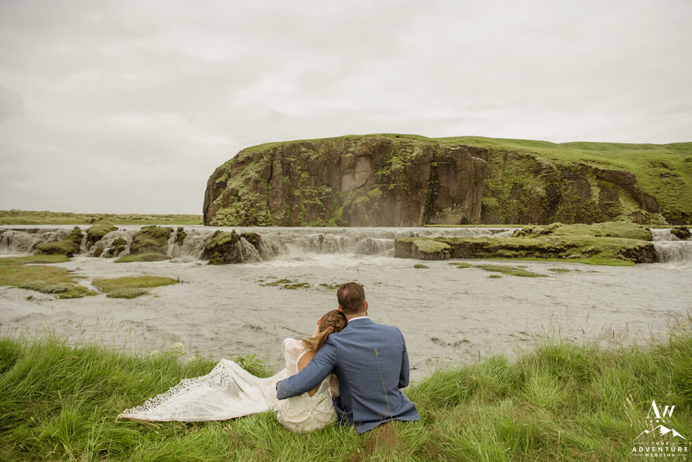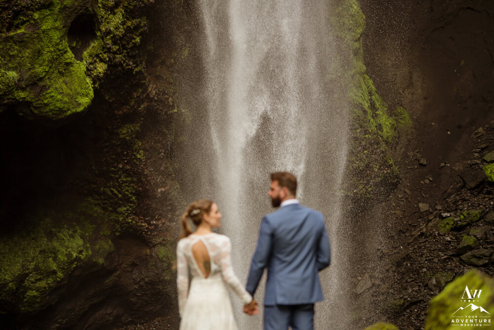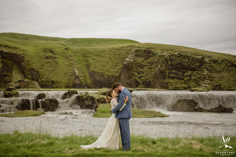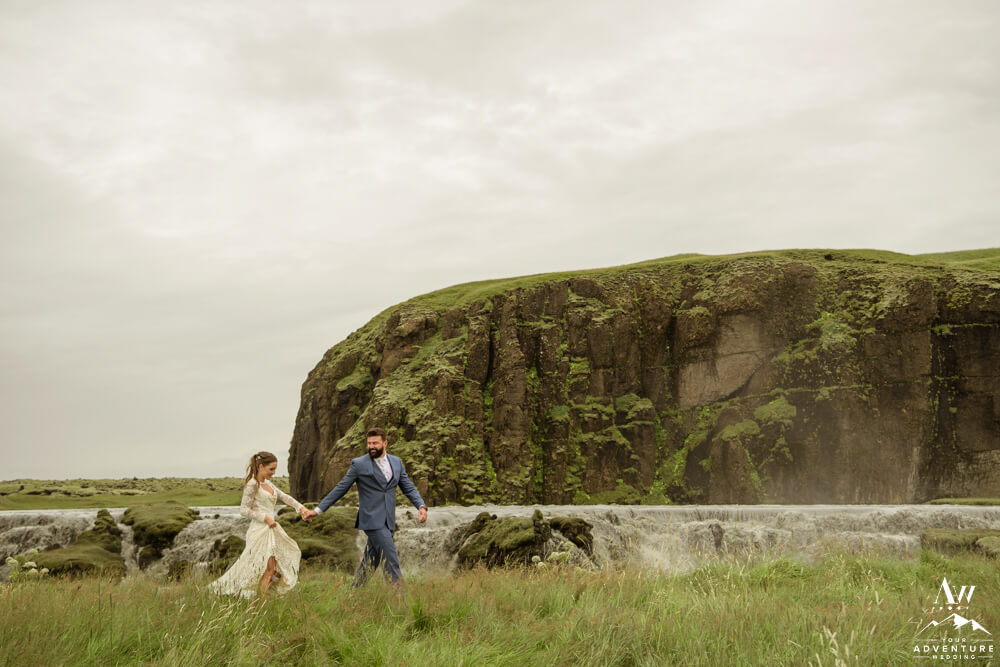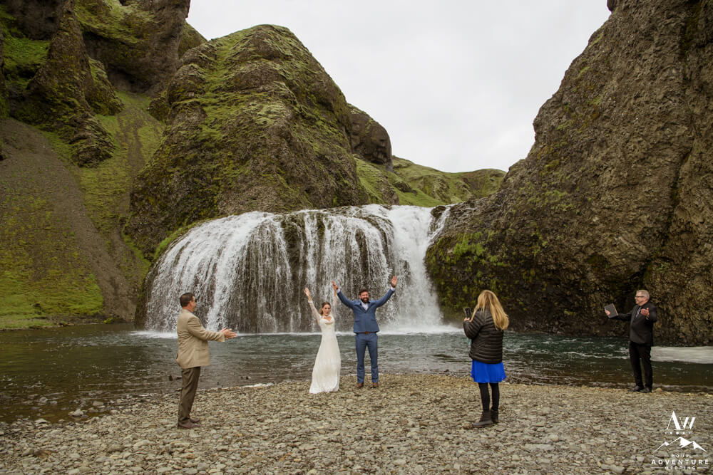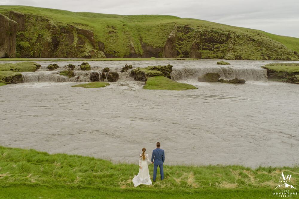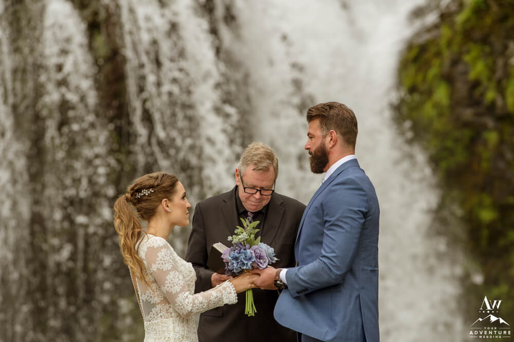 Generally, a true elopement is when a couple is by themselves and no guests joining. However, an exception could be your parents joining you for the ceremony and you two continue the adventure together after. Which is what Amanda and Chad opted in for during their waterfall elopement in Europe. The day these two were married there was extreme flooding happening in Southern Iceland due to subglacial melt water. But no stress, elements like that just add another level of adventure!