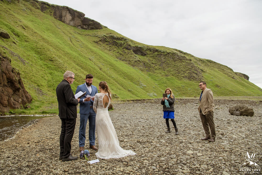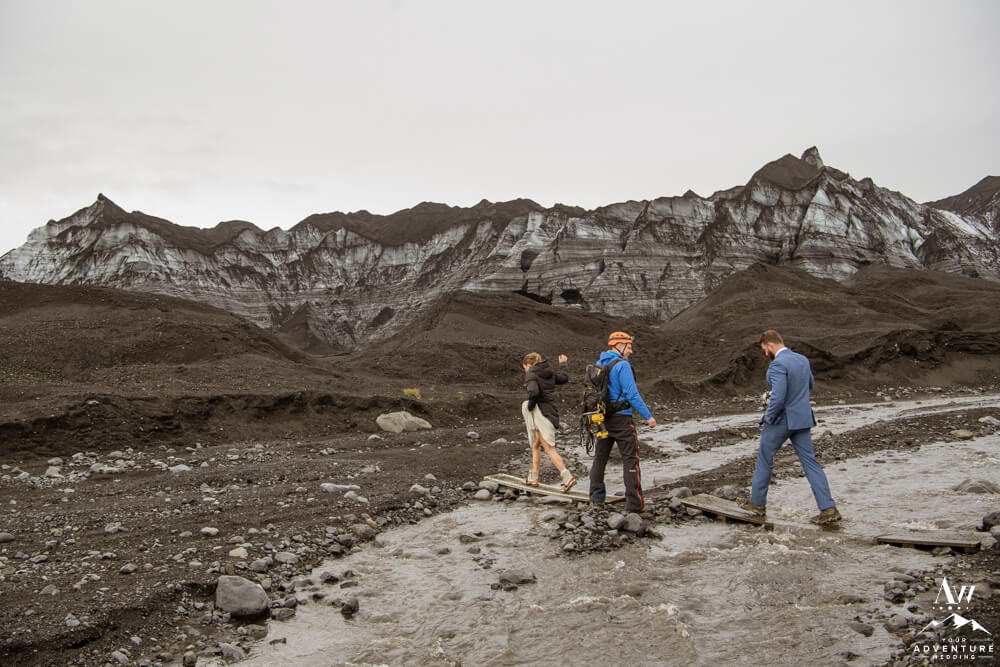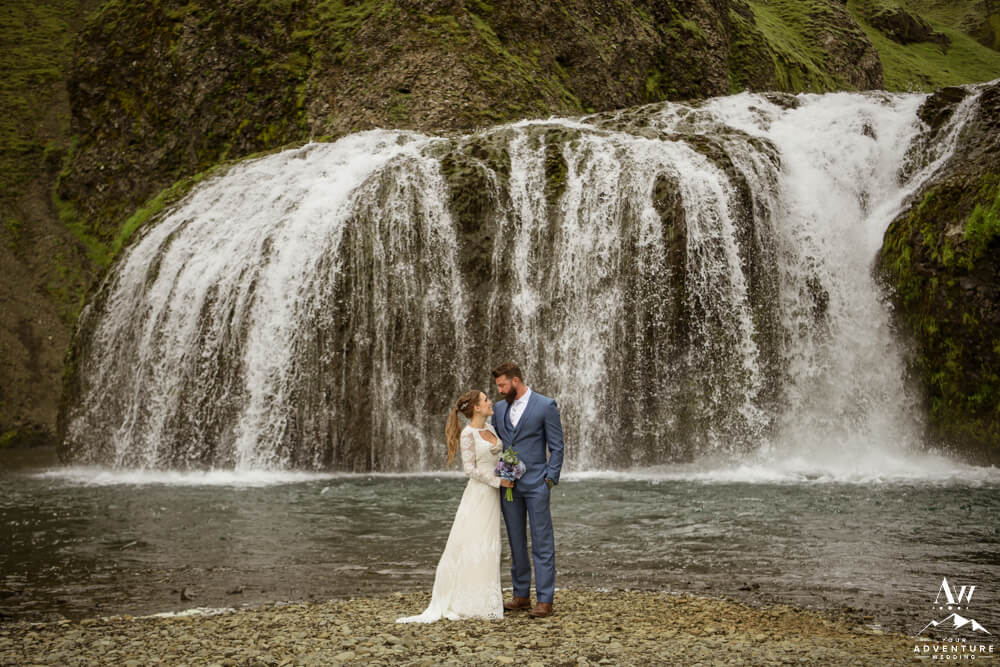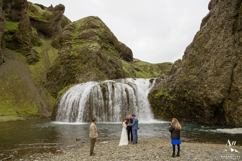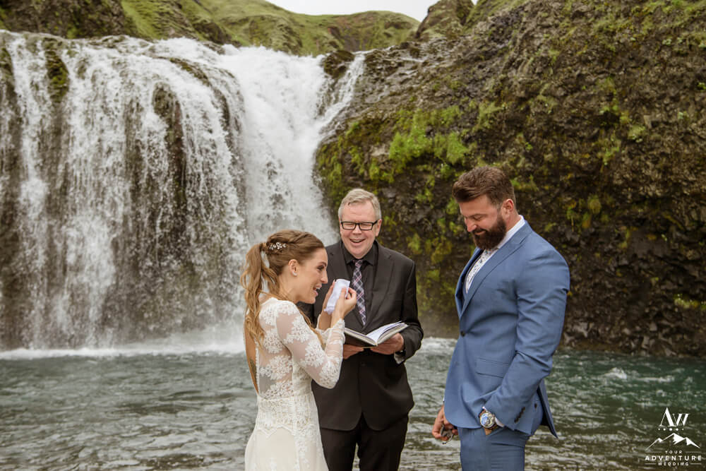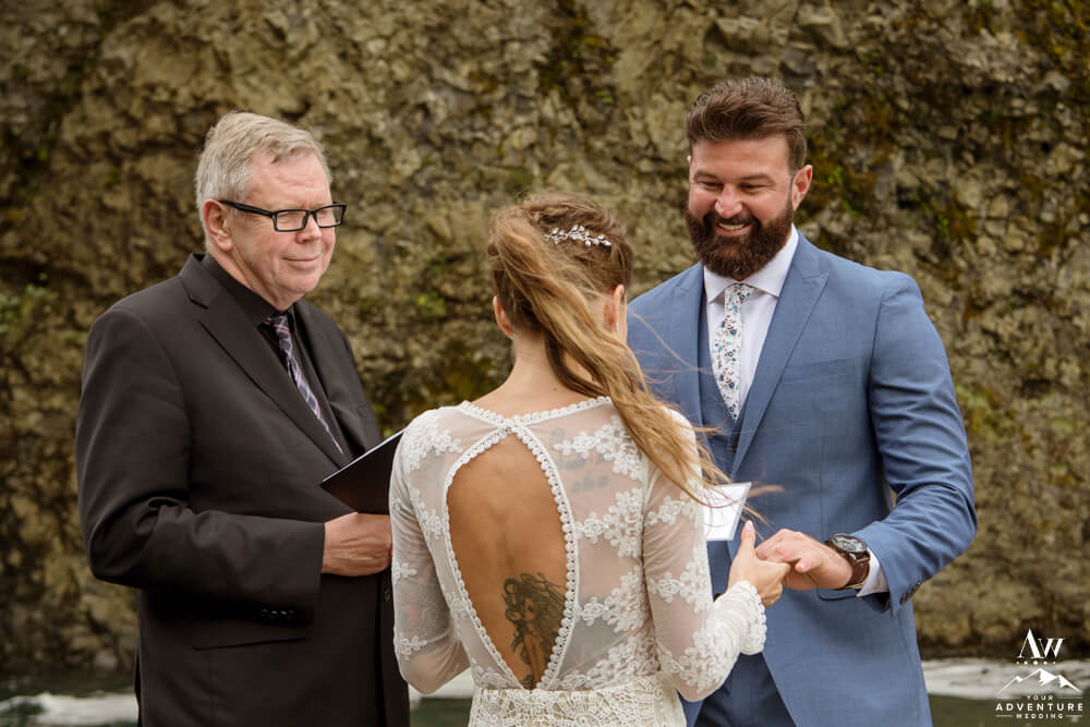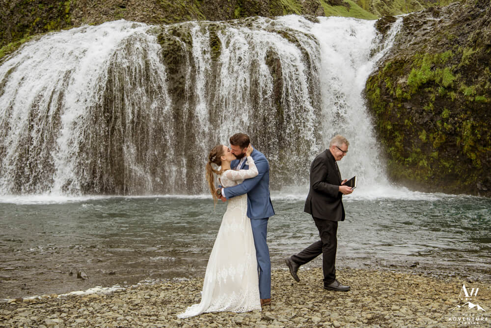 Generally, a true elopement is when a couple is by themselves and no guests joining. However, an exception could be your parents joining you for the ceremony and you two continue the adventure together after. Which is what Amanda and Chad opted in for during their waterfall elopement in Europe. The day these two were married there was extreme flooding happening in Southern Iceland due to subglacial melt water. But no stress, elements like that just add another level of adventure!
