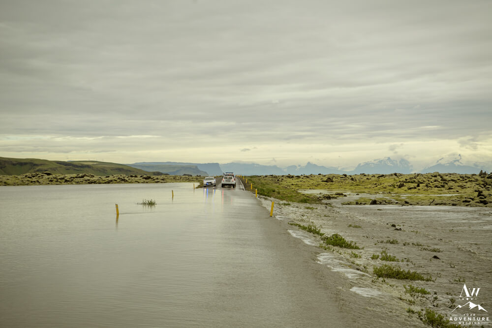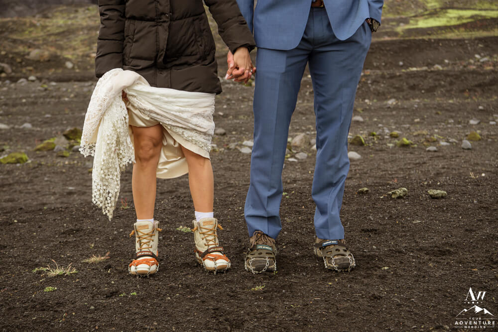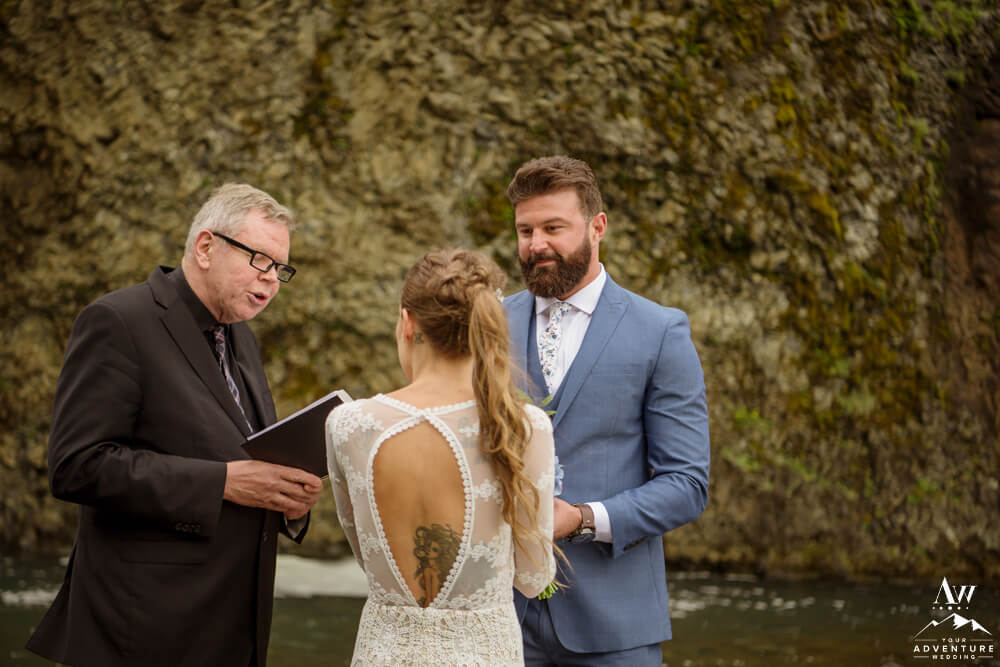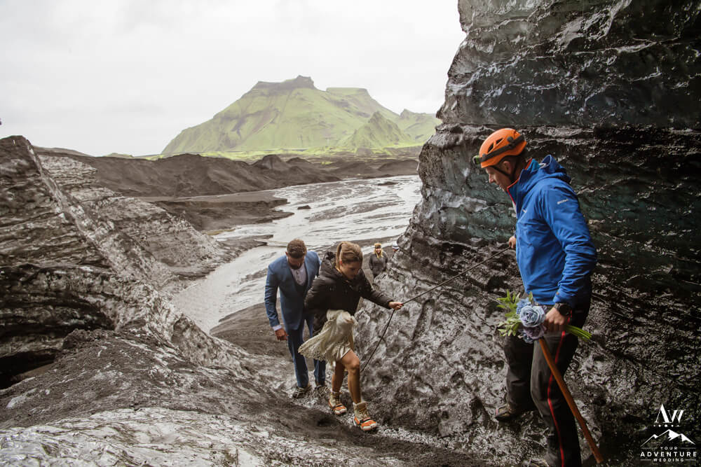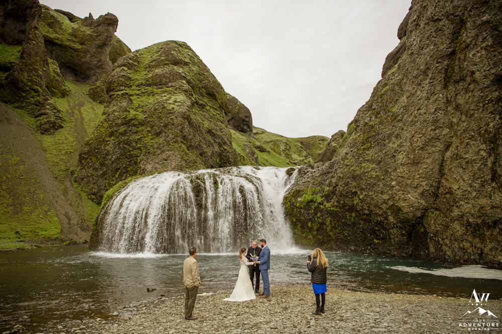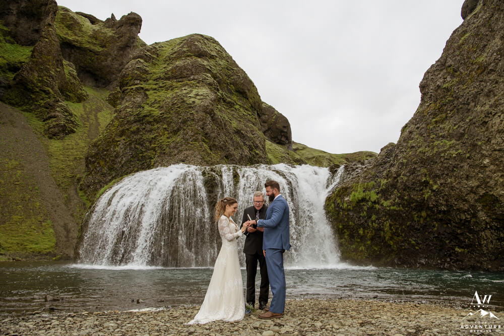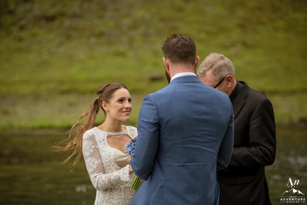 Generally, a true elopement is when a couple is by themselves and no guests joining. However, an exception could be your parents joining you for the ceremony and you two continue the adventure together after. Which is what Amanda and Chad opted in for during their waterfall elopement in Europe. The day these two were married there was extreme flooding happening in Southern Iceland due to subglacial melt water. But no stress, elements like that just add another level of adventure!