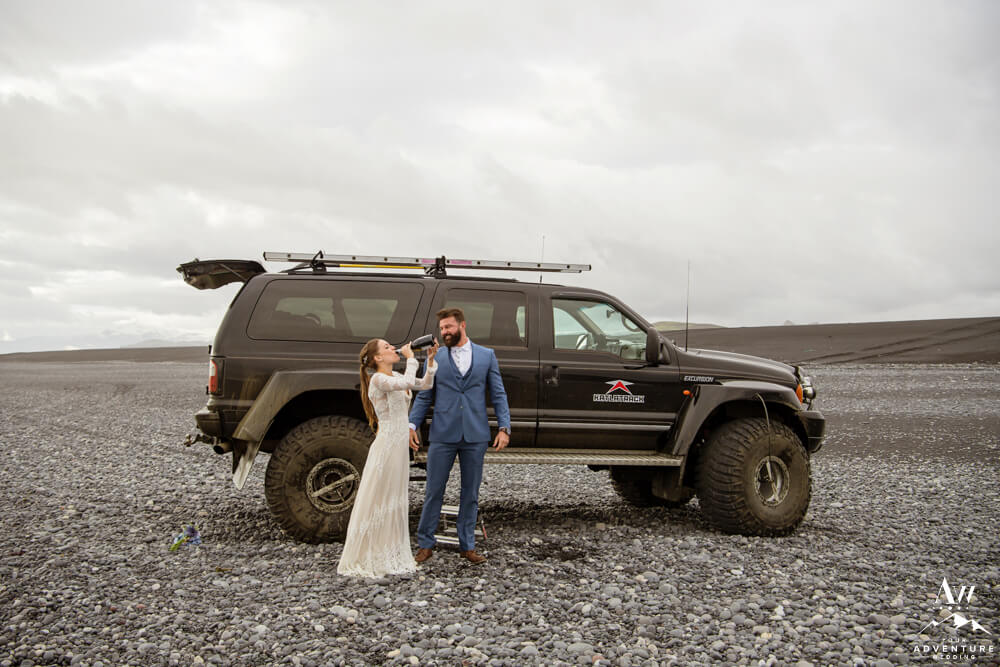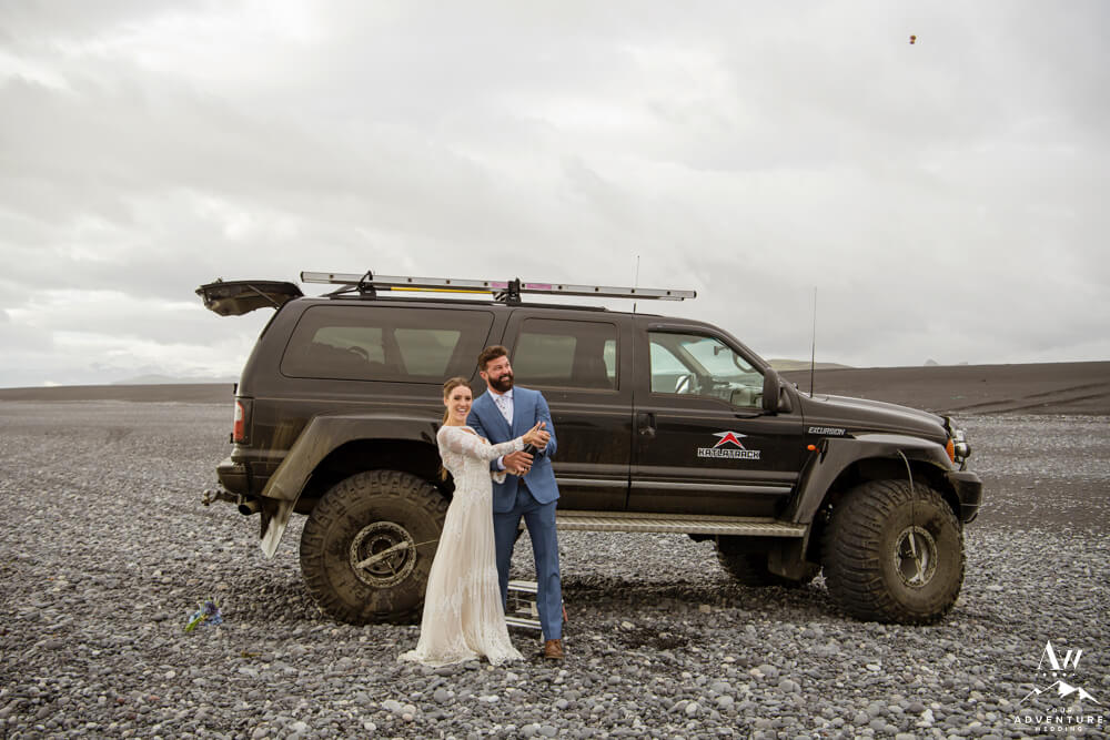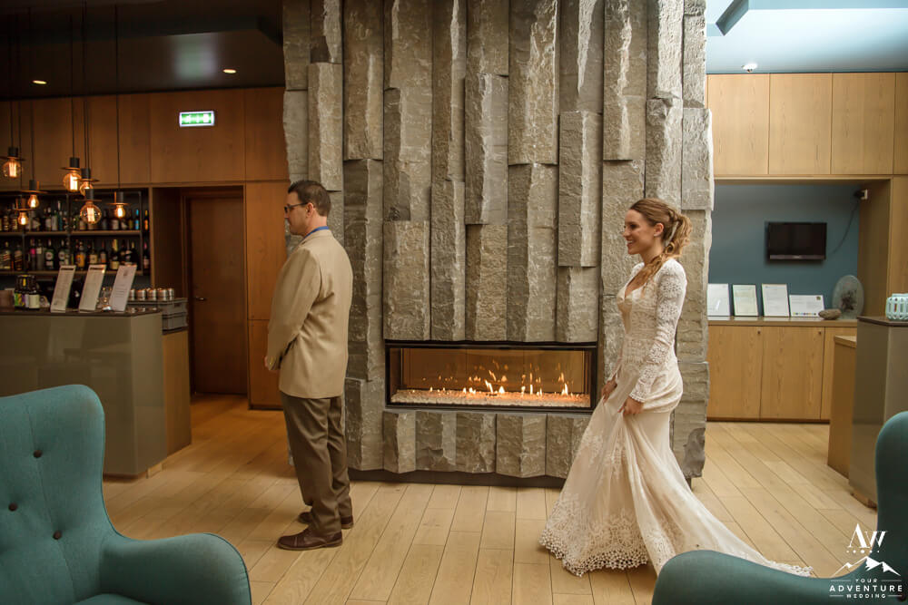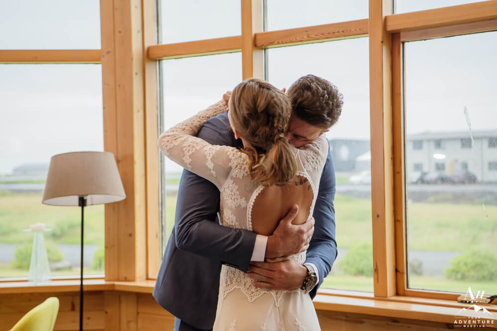 As we alluded to above, it was important for Chad and Amanda to not see each other before their staged first look. However, Amanda also wanted to share a “first look” with her father first. So Amanda and her father met in one area of the hotel in Iceland and her groom to be in another. Overall, they were both crazy sweet moments to share in before the waterfall elopement began. Seconds later, the soon to be newlyweds jumped into the super jeep ready to rock out their amazing day!