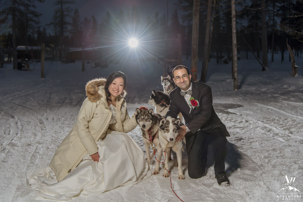 Furthermore, in hiring a local Lapland wedding photographer, the big benefit is that they know the area and how to shoot year round. For instance, it is extremely important to have a photographer that is experienced with off camera flash if you’re coming during wintertime. Therefore, you will end up with nicely lit photos no matter if the sunrises or not. Meanwhile, our adventure wedding photographers are well-versed in shooting when it is 24 hour darkness from tons of previous Lapland elopements.