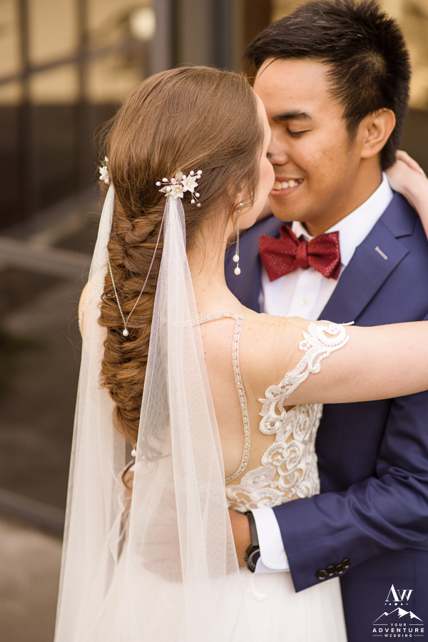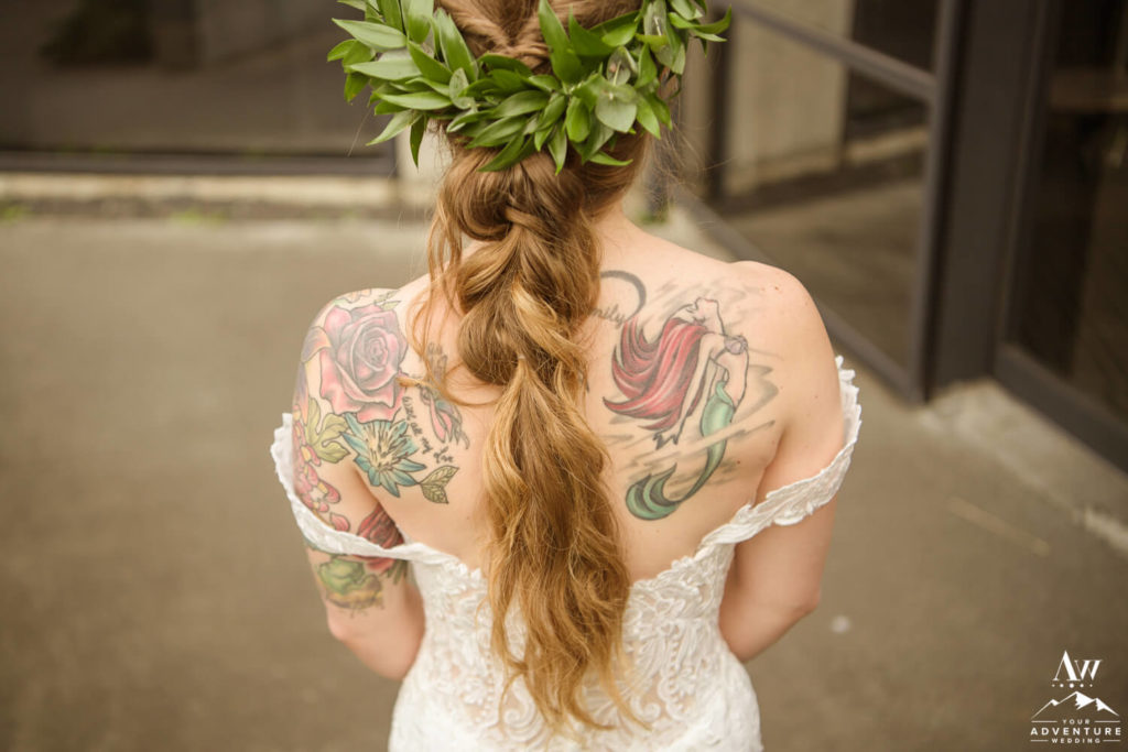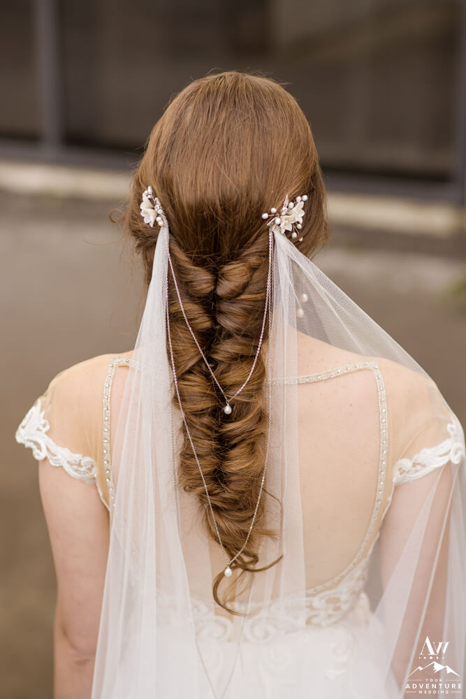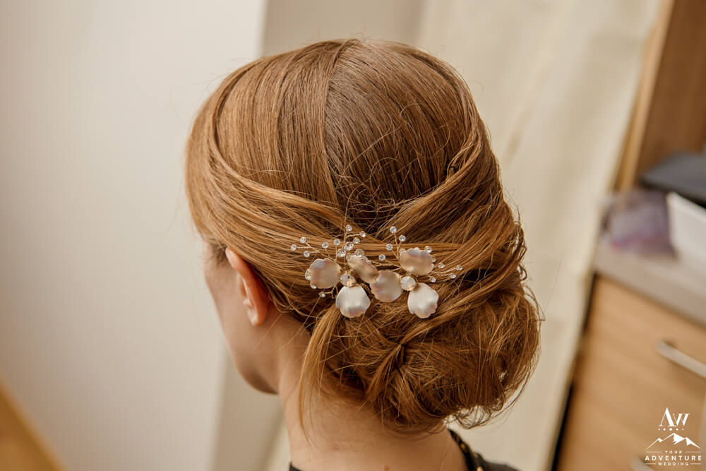 To illustrate, if you plan to be at a waterfall versus a beach or mountain top it could be very different conditions on all three! For example, waterfalls can be windy and wet. But the overlapping theme is that you’ll be outside. Thus, you may want to choose from adventure wedding hairstyles that will have staying power throughout the entire day. And also bring along materials to touch up like bobby pins, hairspray, and even a comb.