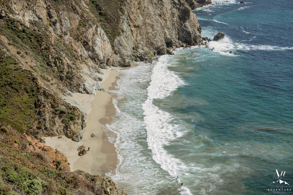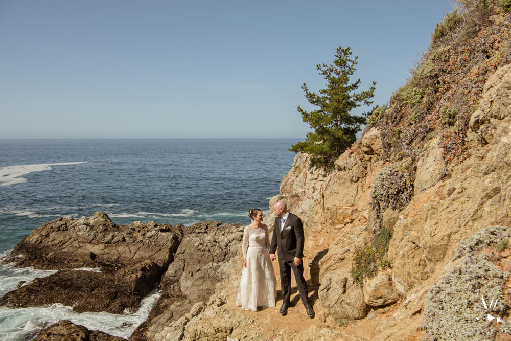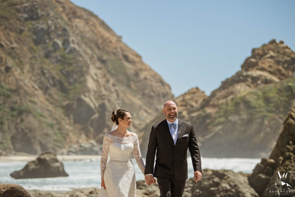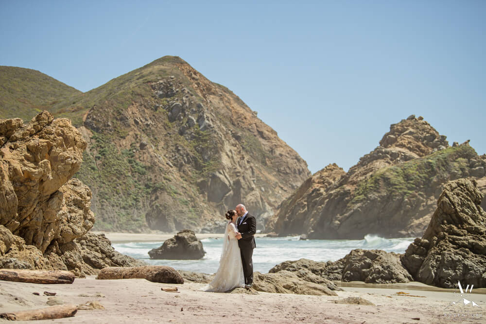 Partington Cove is found within the famous Julia Pfeiffer Burns State Park. Meanwhile, being married in Partington Cove requires an in advance permit from park services. It’s a bit of a time consuming process with deadlines, so make sure you start early or hire an adventure wedding planner to help you. Also be aware, sometimes they limit specific areas on how many people can be in attendance. For example, in April 2022, they were limiting to 10 or less people and that amount had to include your photographer, video, and celebrant alongside of your guest list, etc.